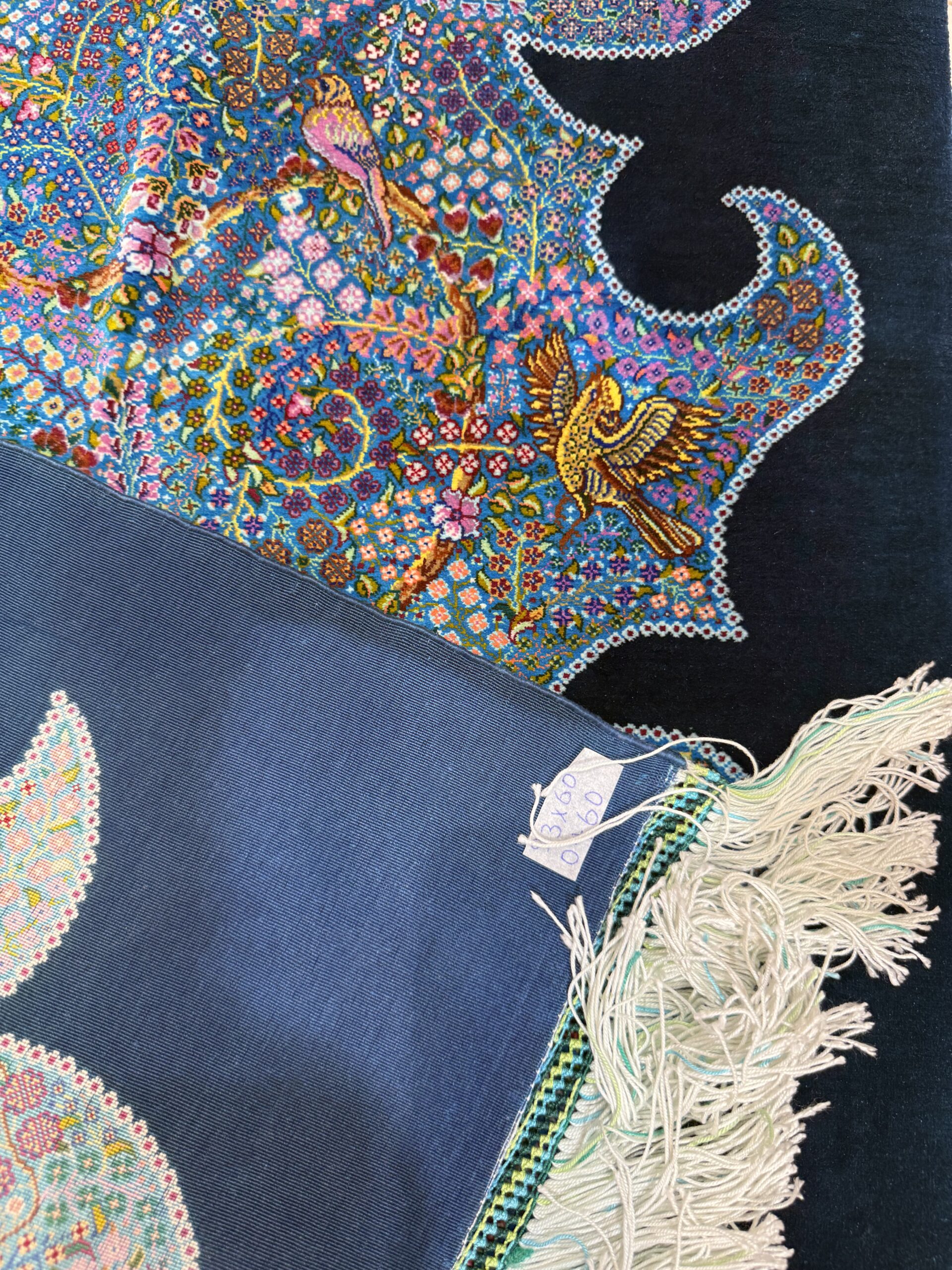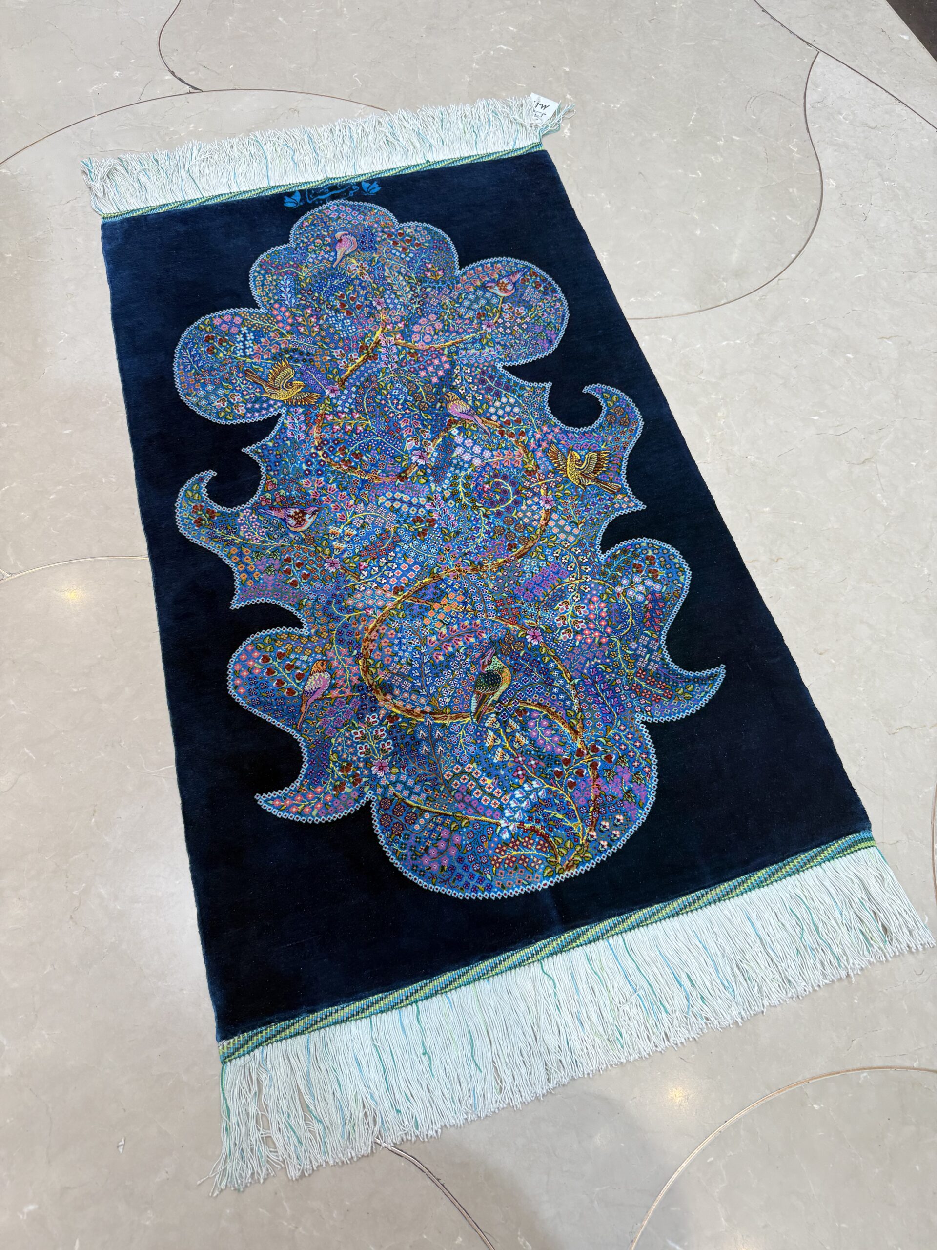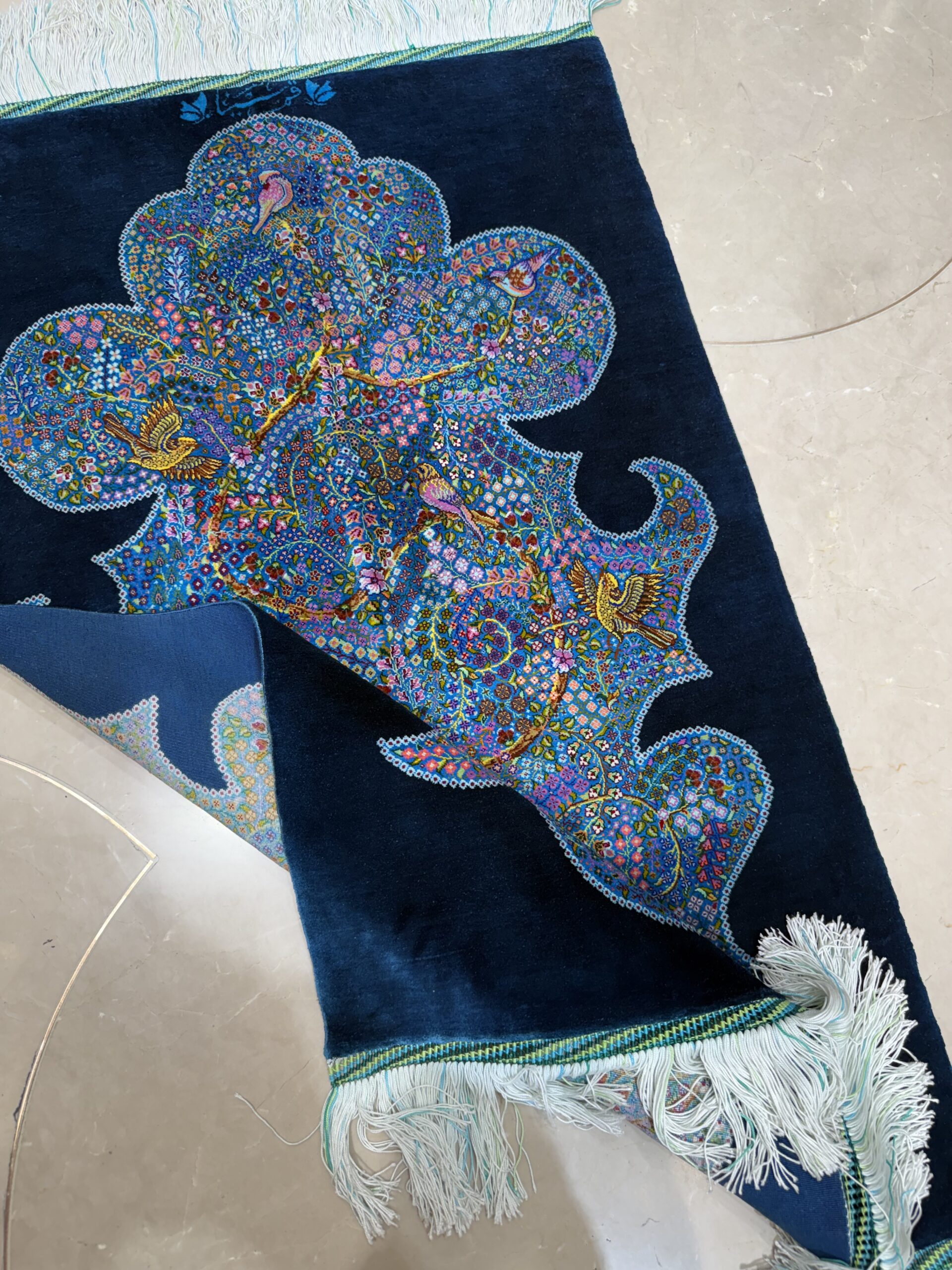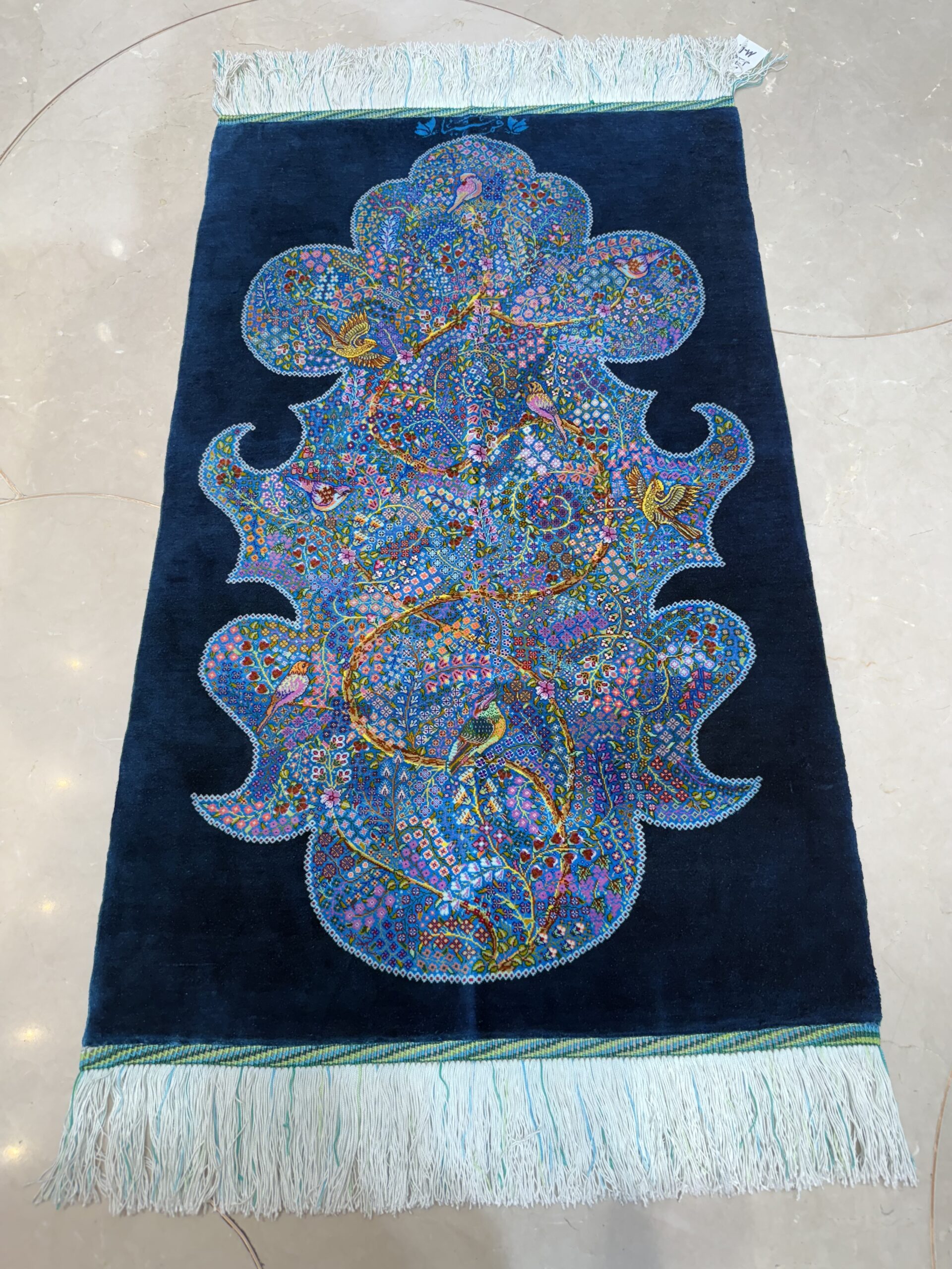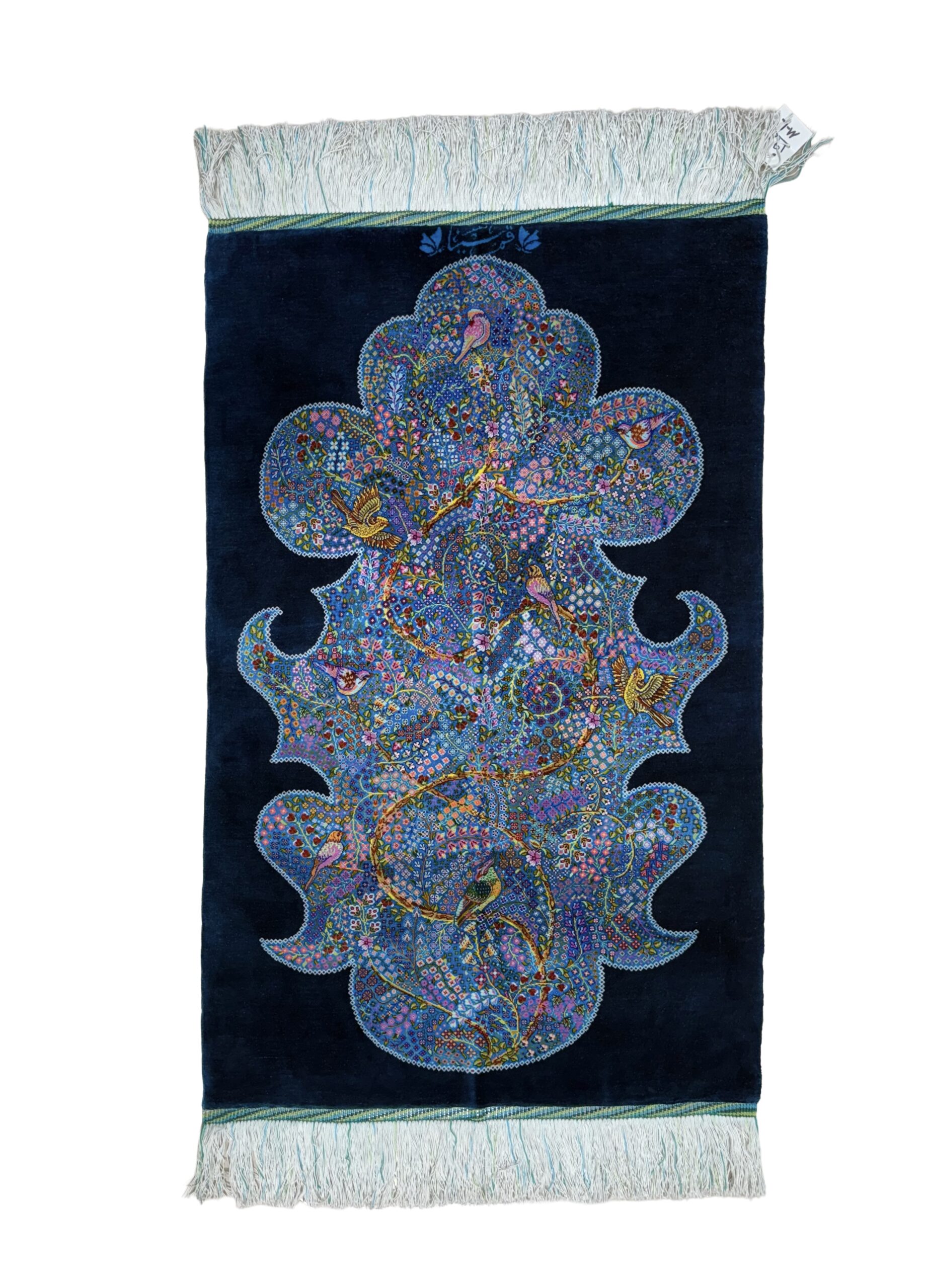 تابلو فرش تمام ابریشم قم طرح درختی و پرندگان برند سینا 60 در 90