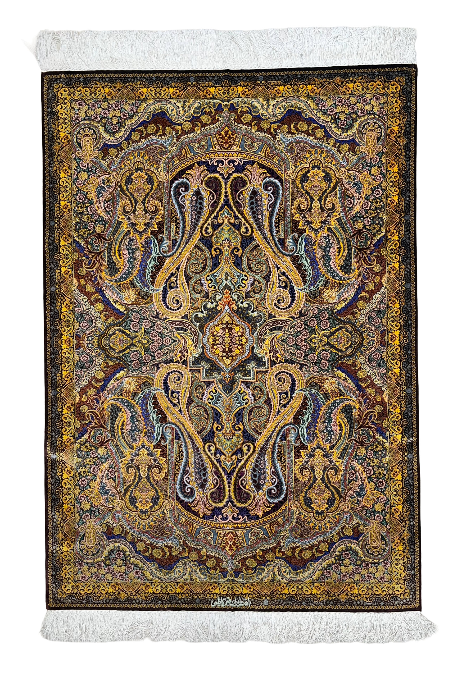 ذرع و نیم تمام ابریشم قم طرح بته برند کاظمی
