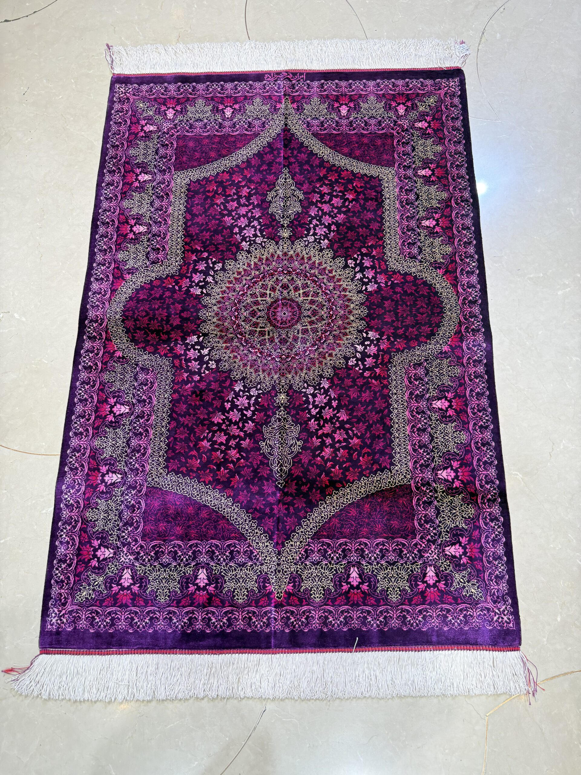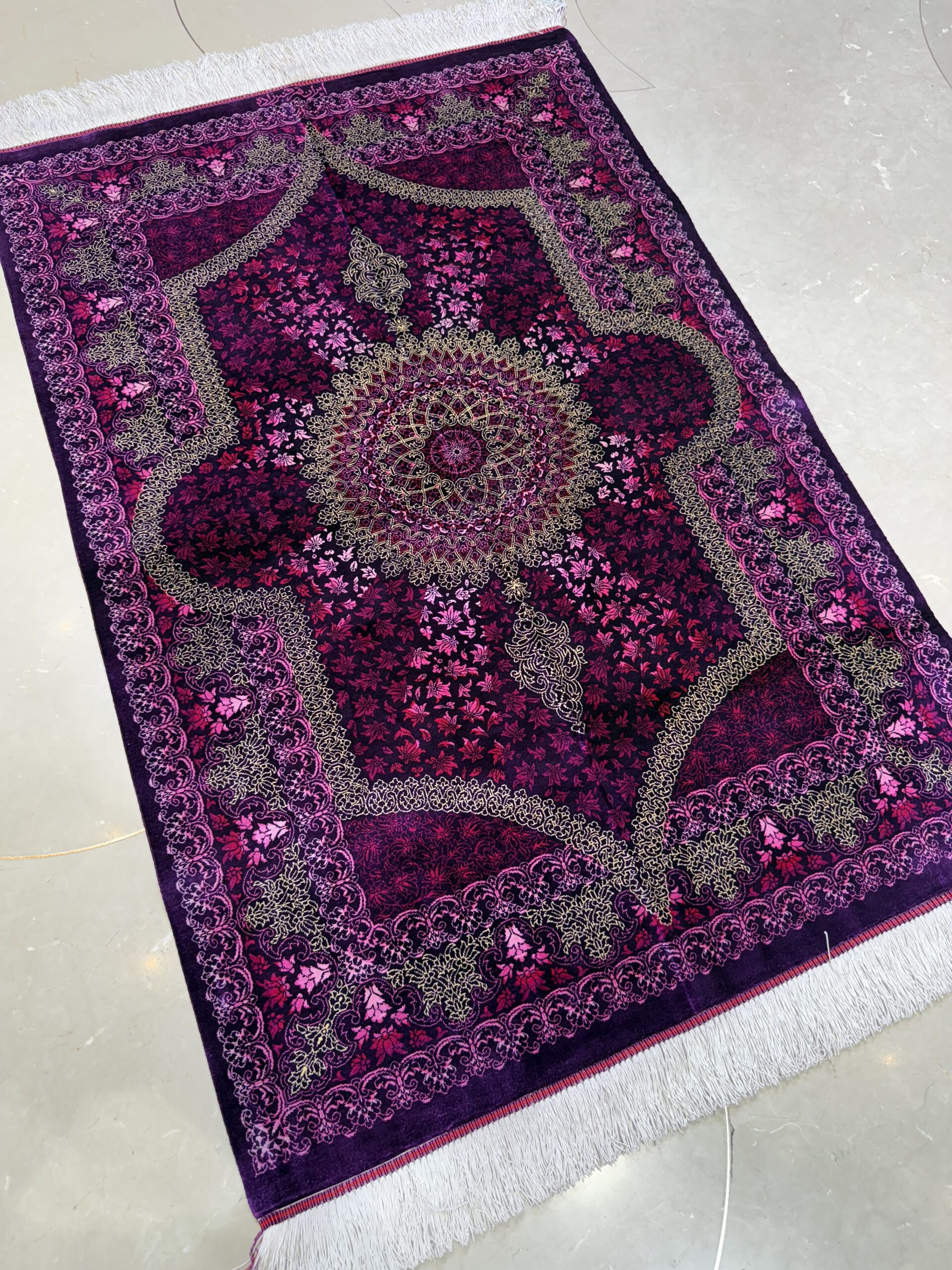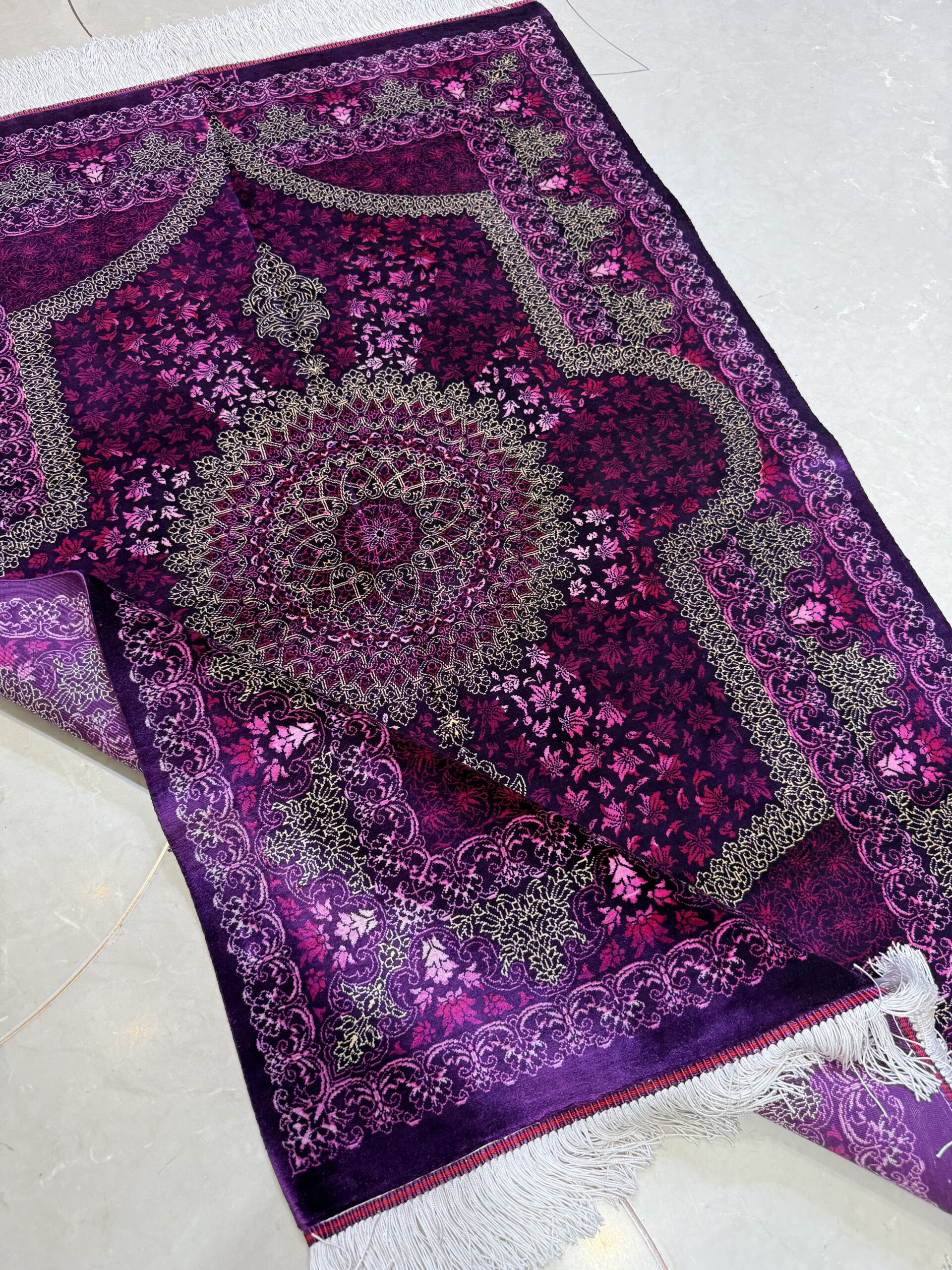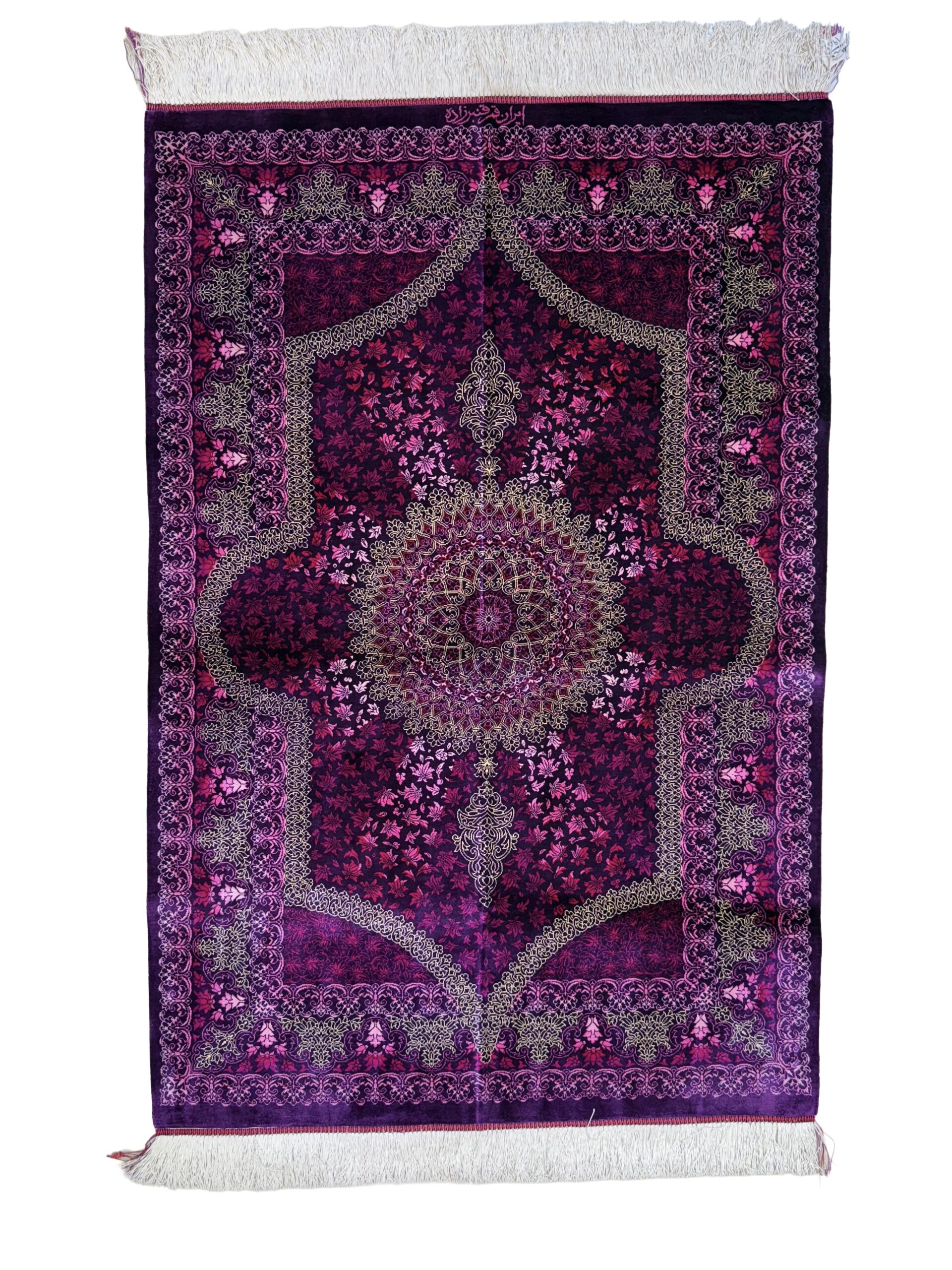 ذرع چارک تمام ابریشم قم برند قنبرزاده با رنگبندی بنفش صورتی
