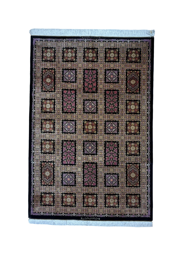 سه متری تمام ابریشم قم طرح لچک ترنج برند تخت جمشید