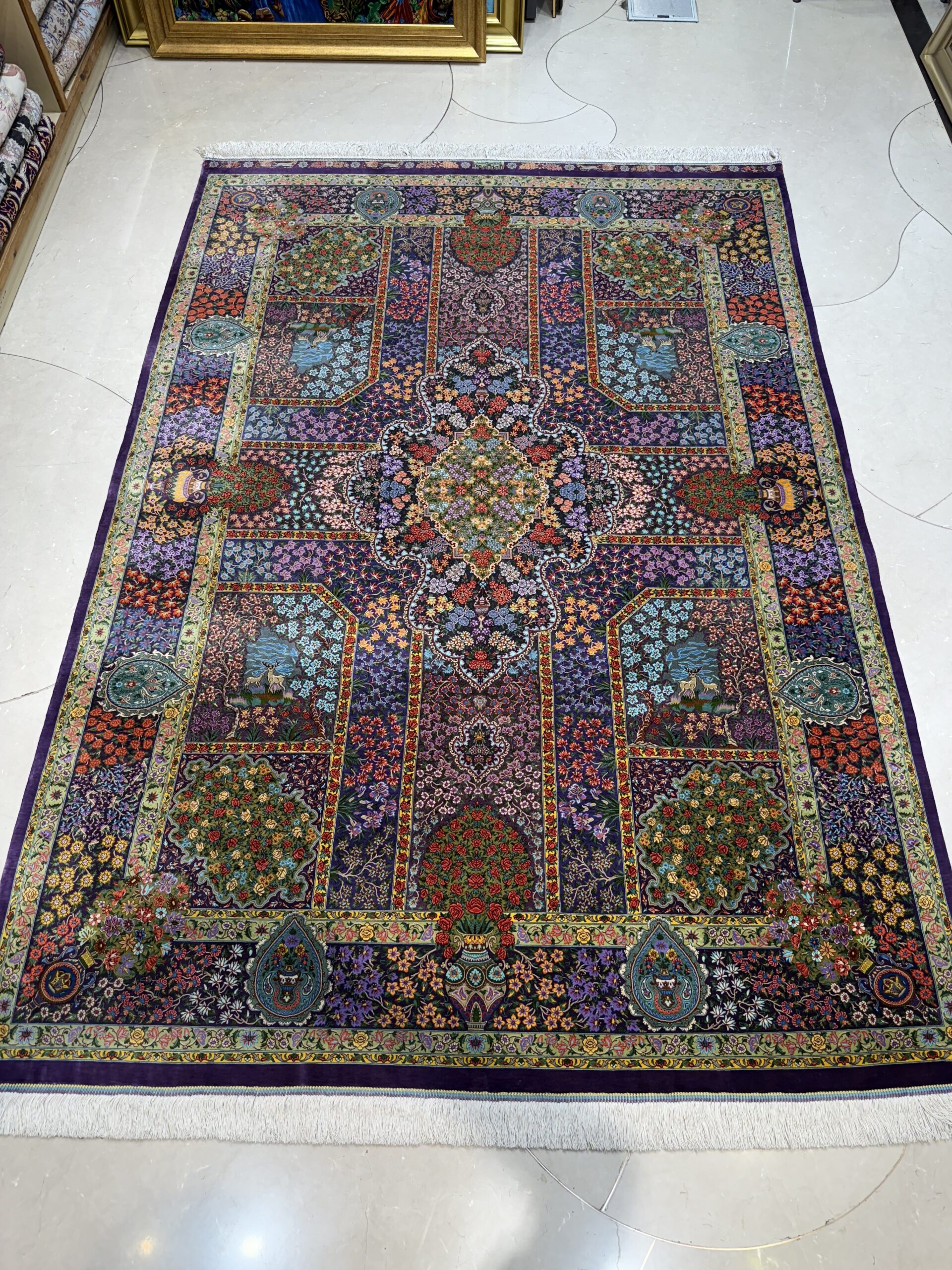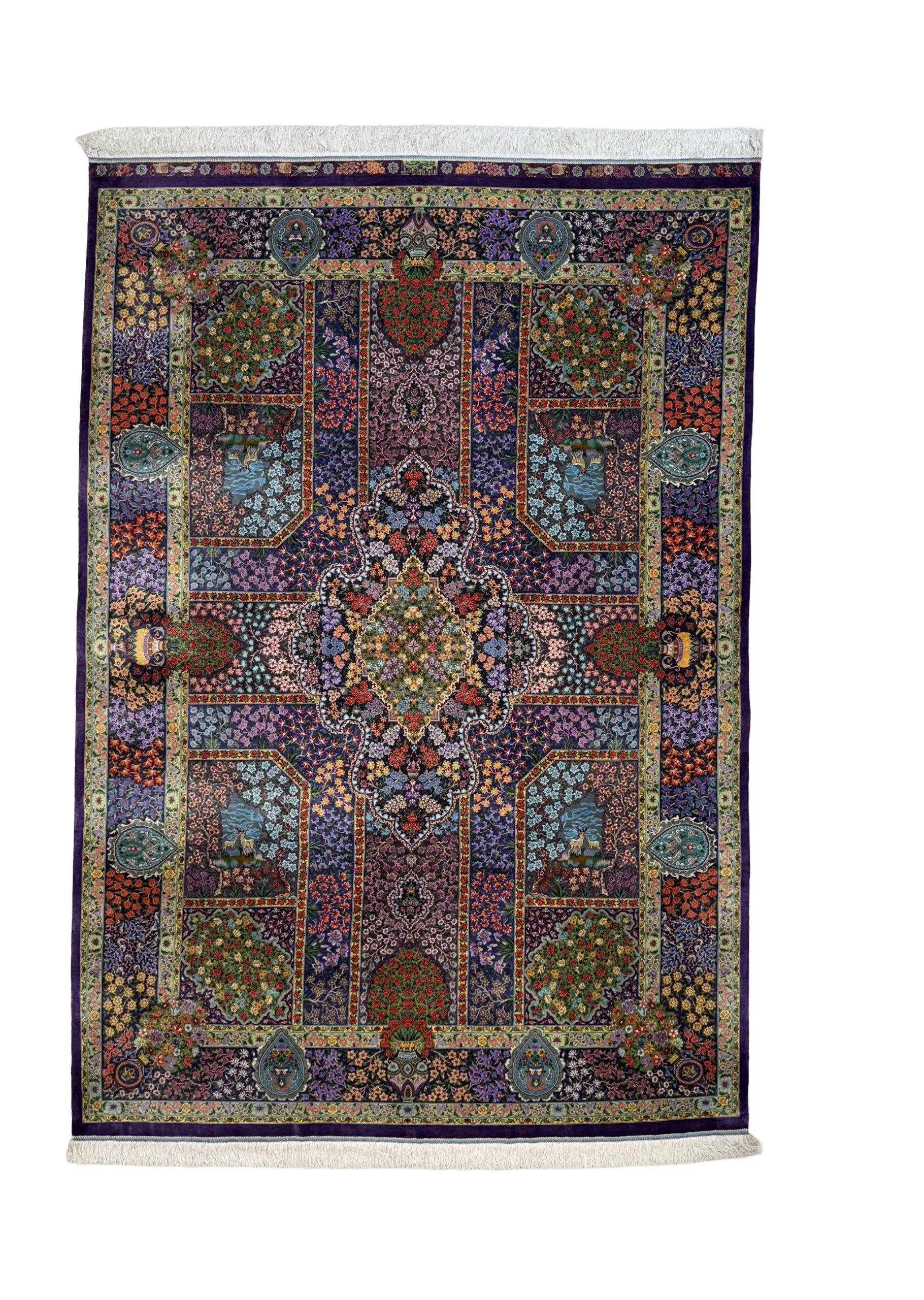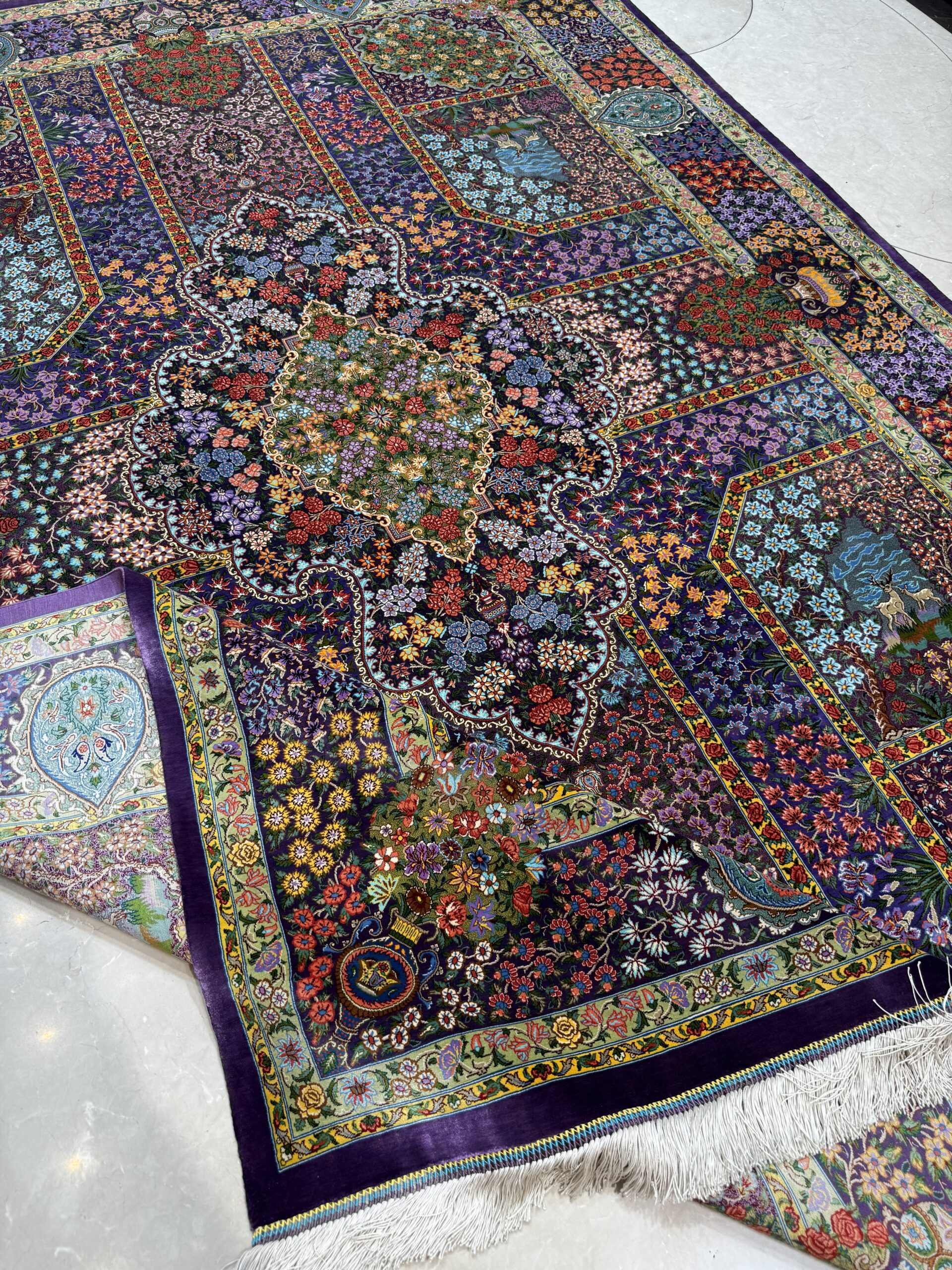 چهار متری تمام ابریشم قم طرح گل و منظره برند تخت جمشید