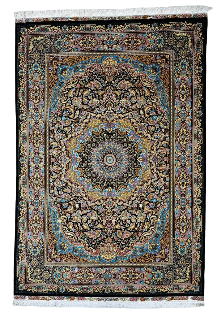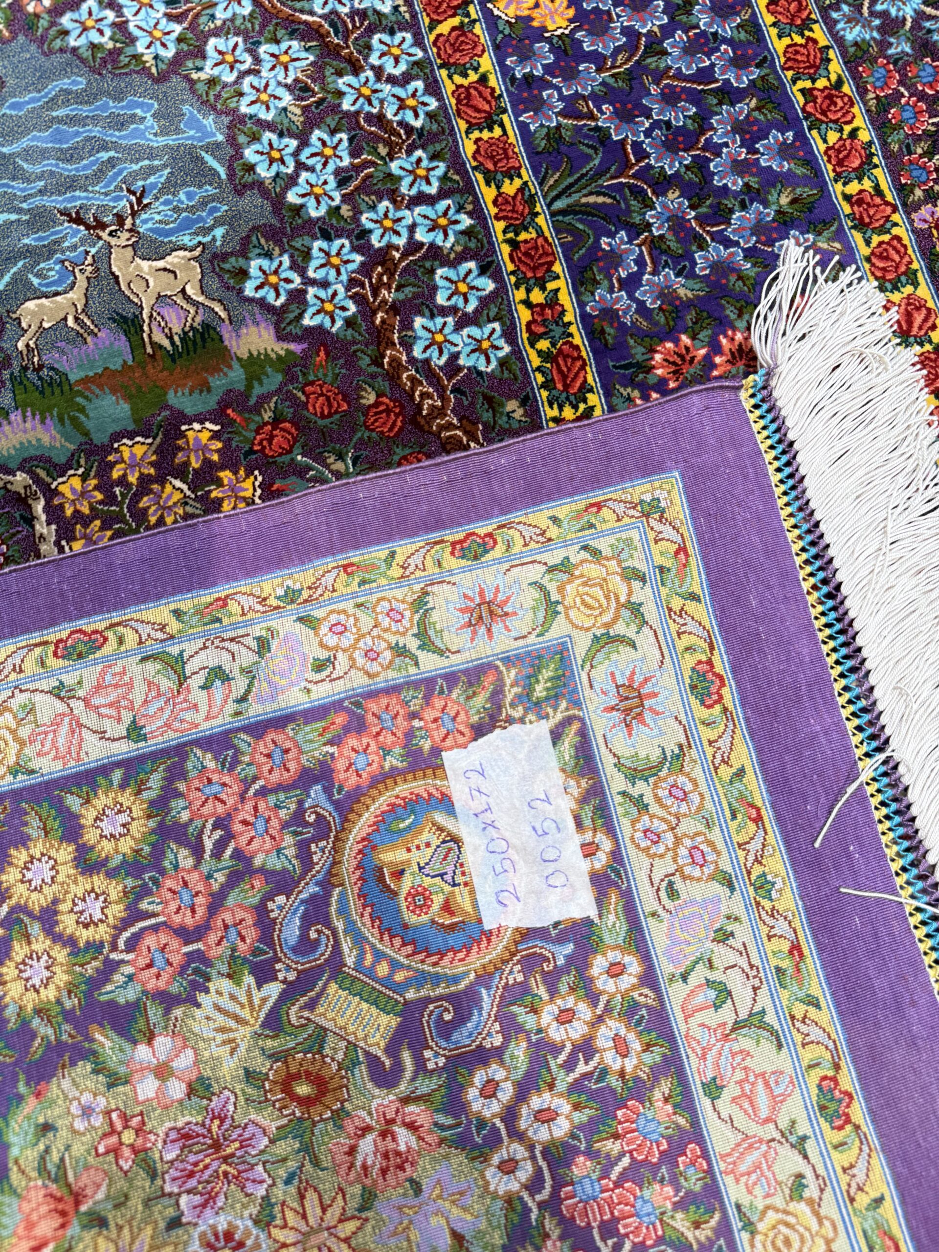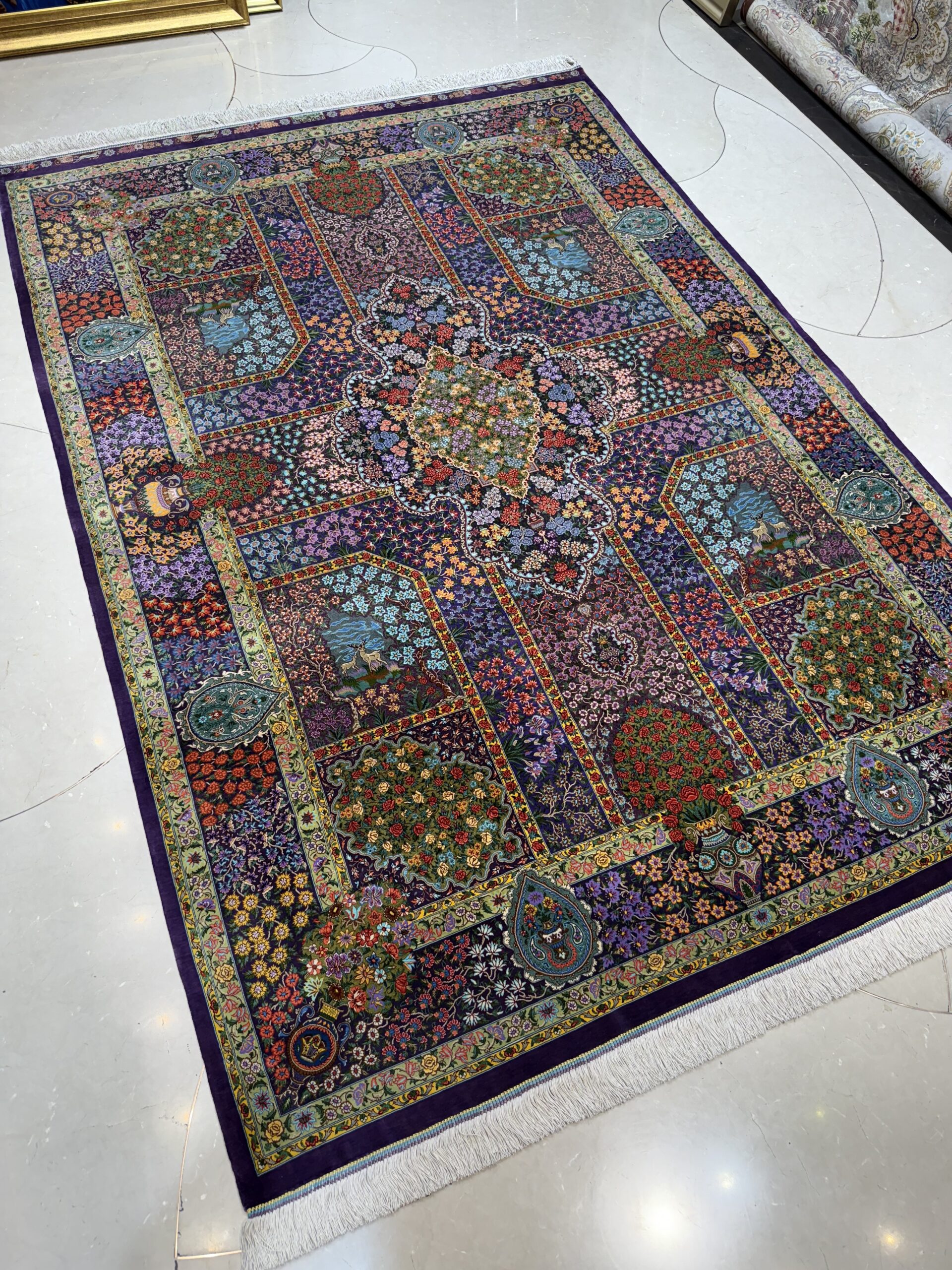 چهار متری تمام ابریشم قم طرح گل و منظره برند تخت جمشید
