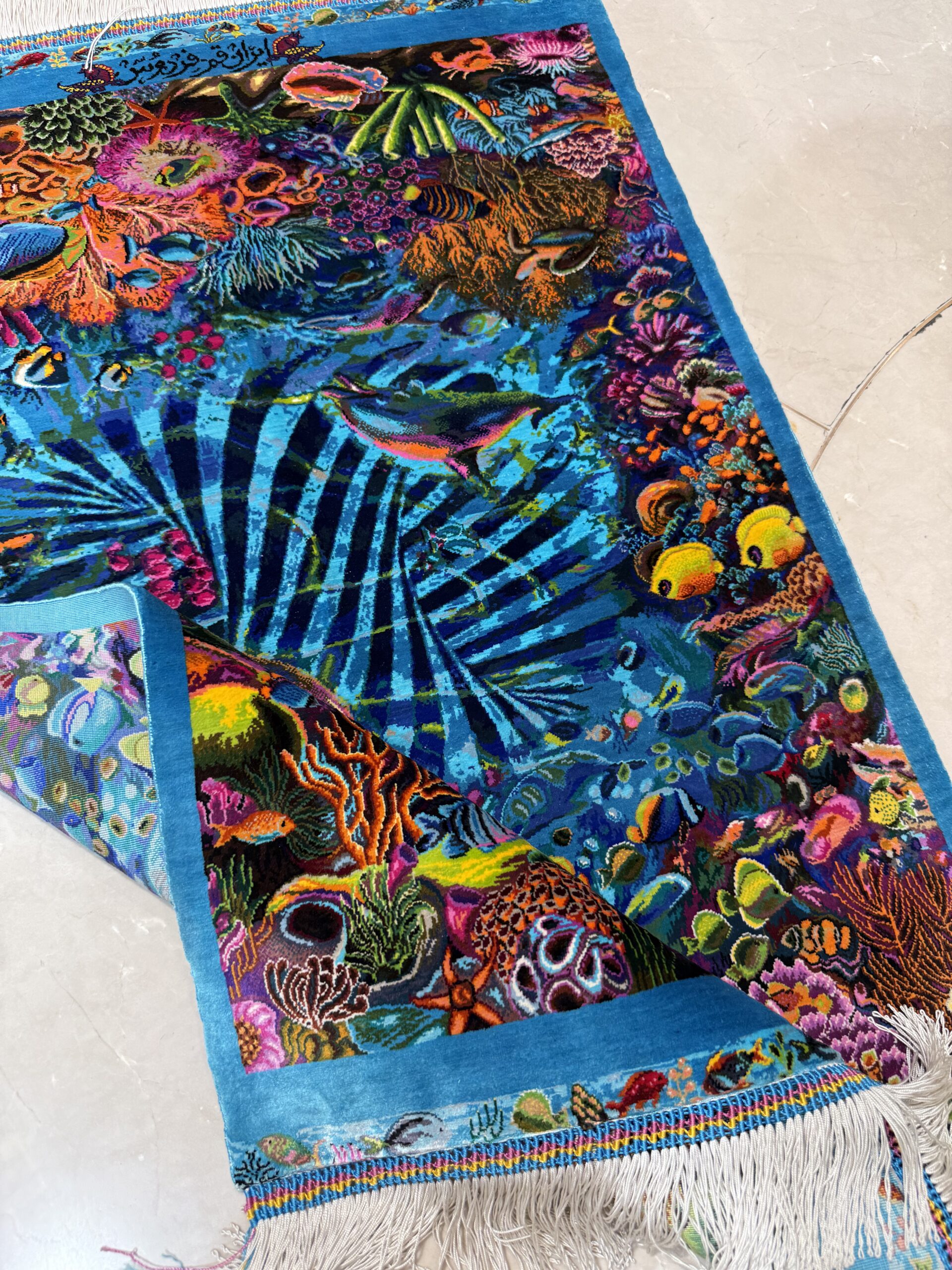 60 در 90 تمام ابریشم قم طرح اکواریوم برند فردوس