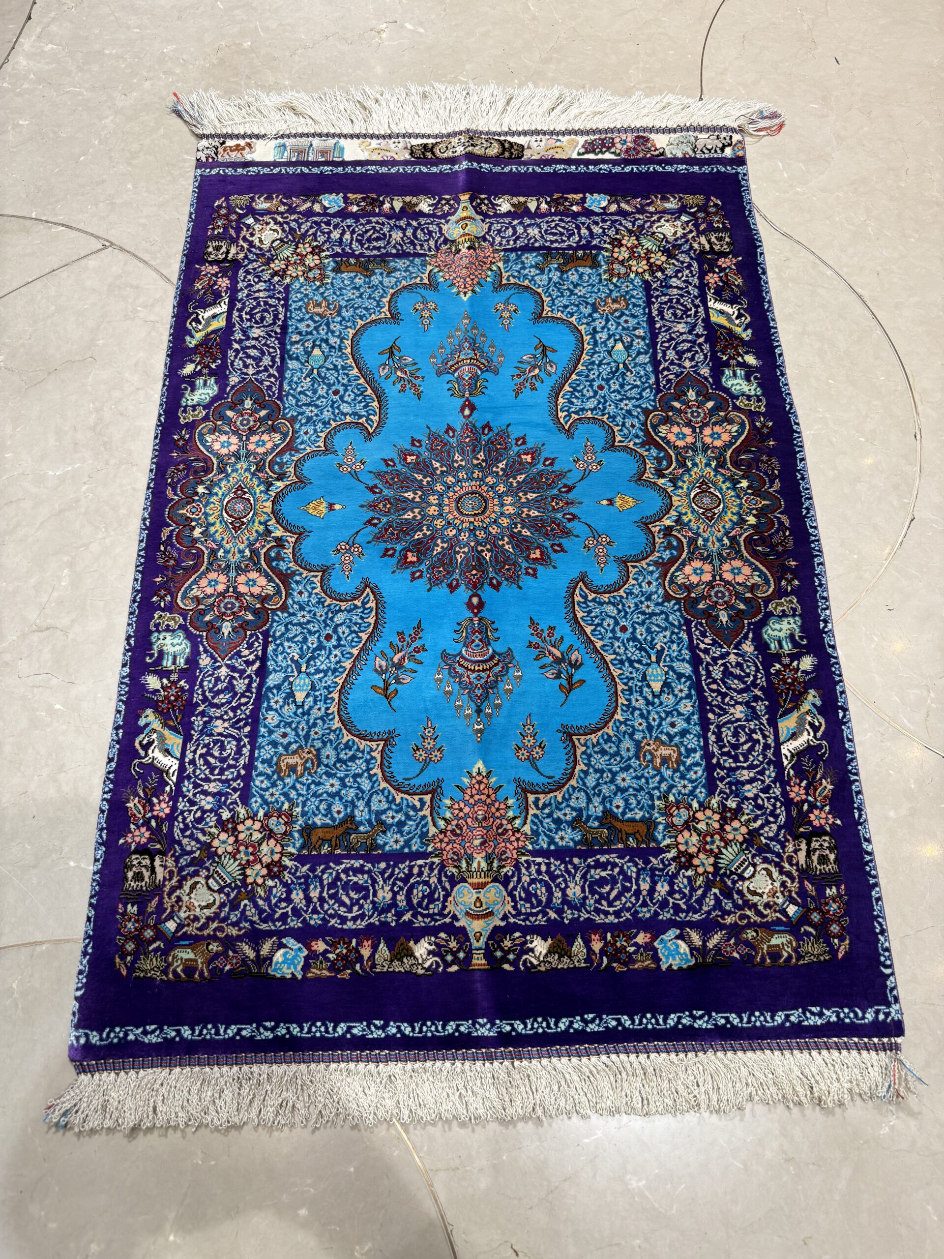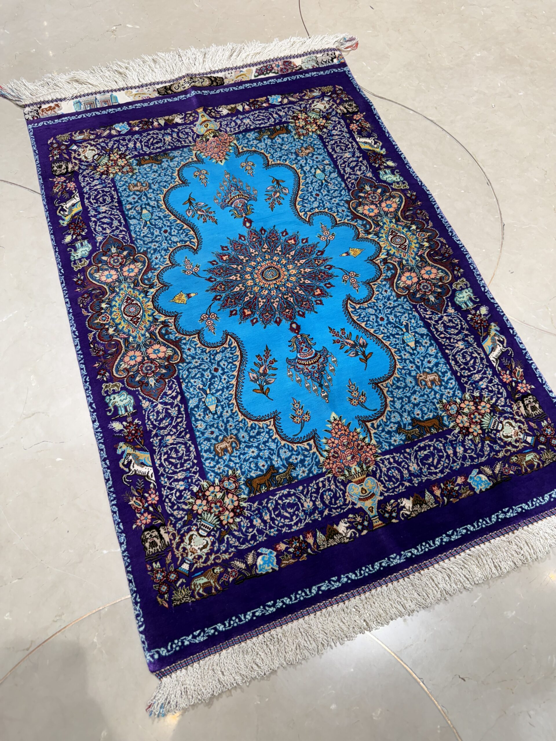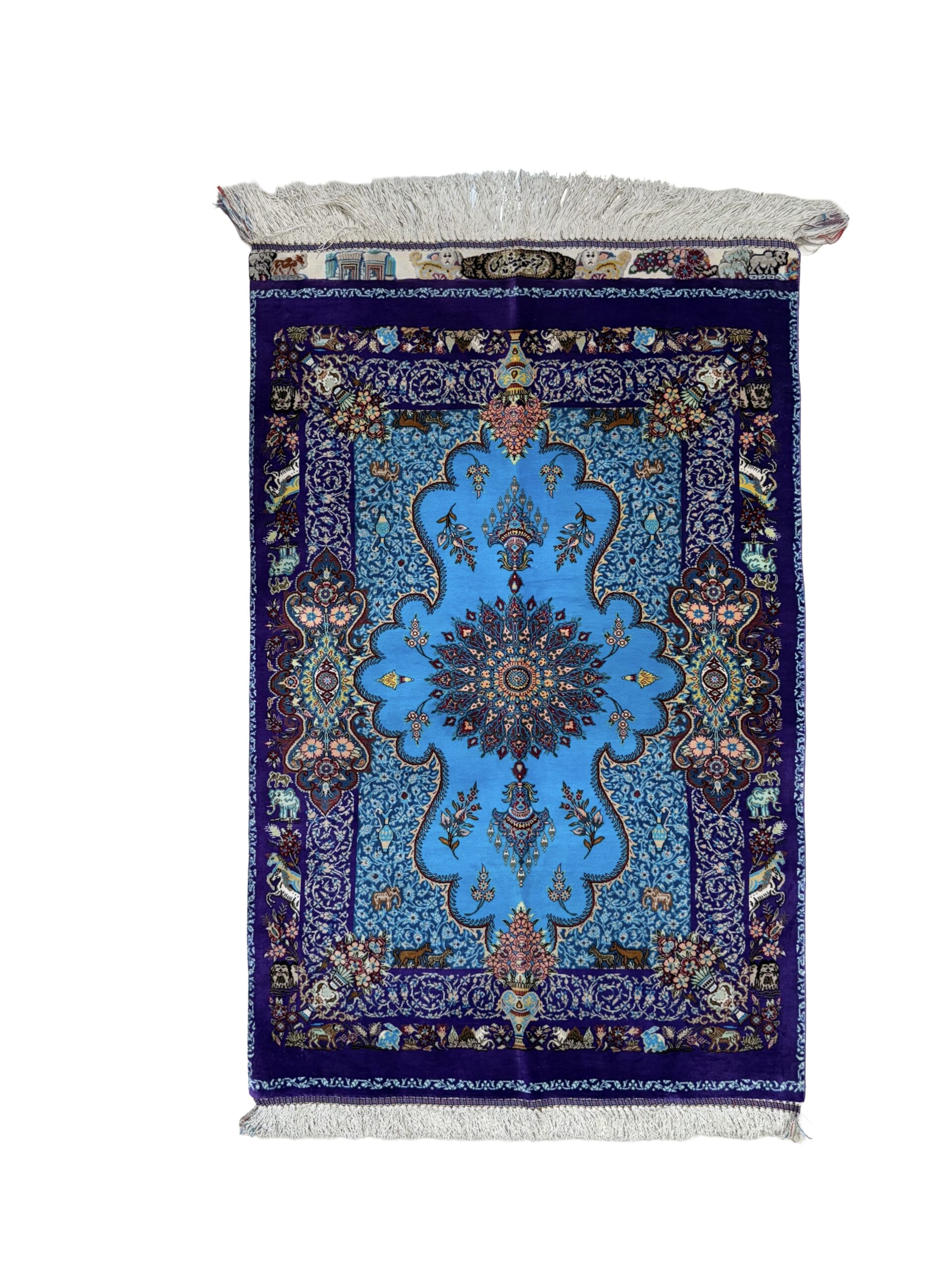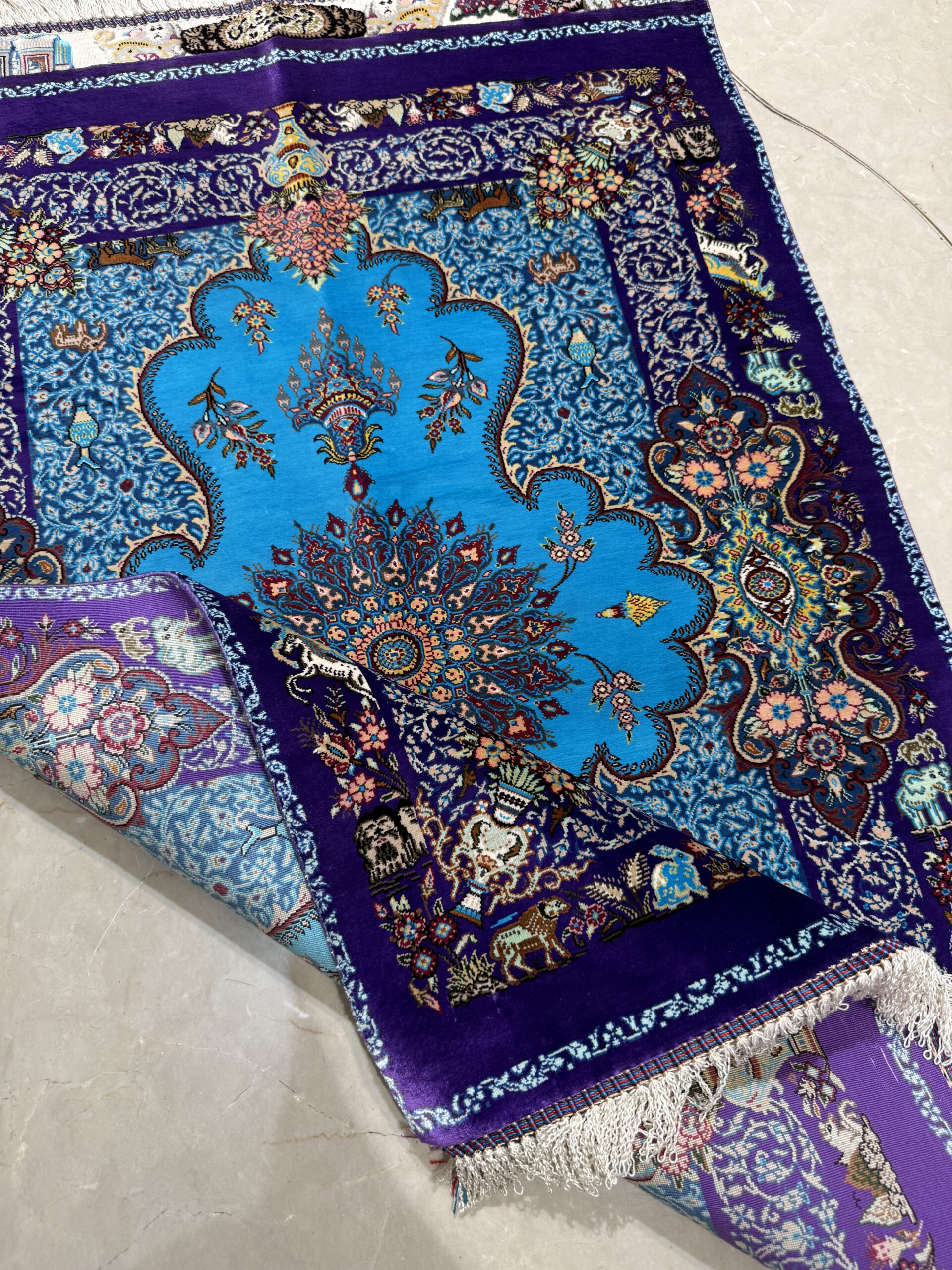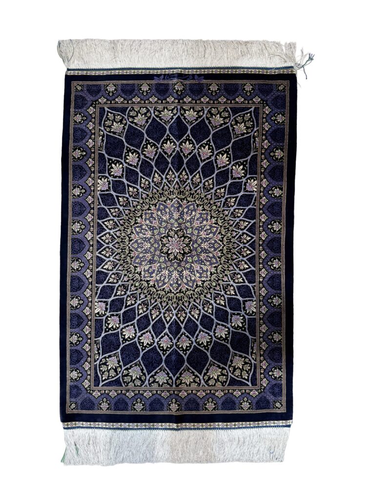 60×90 تمام ابریشم قم طرح لچک ترنج برنده جعفر جمشیدی