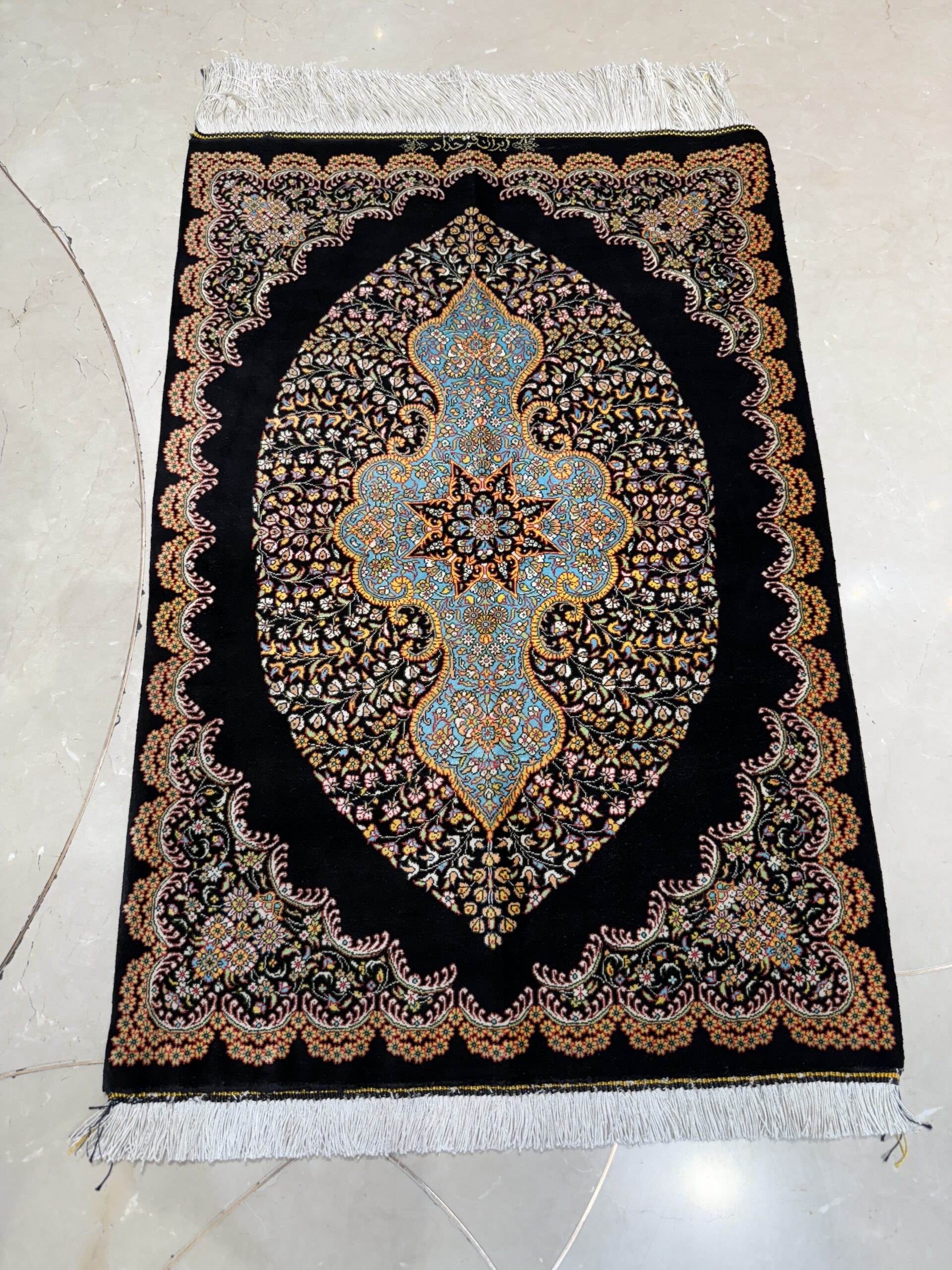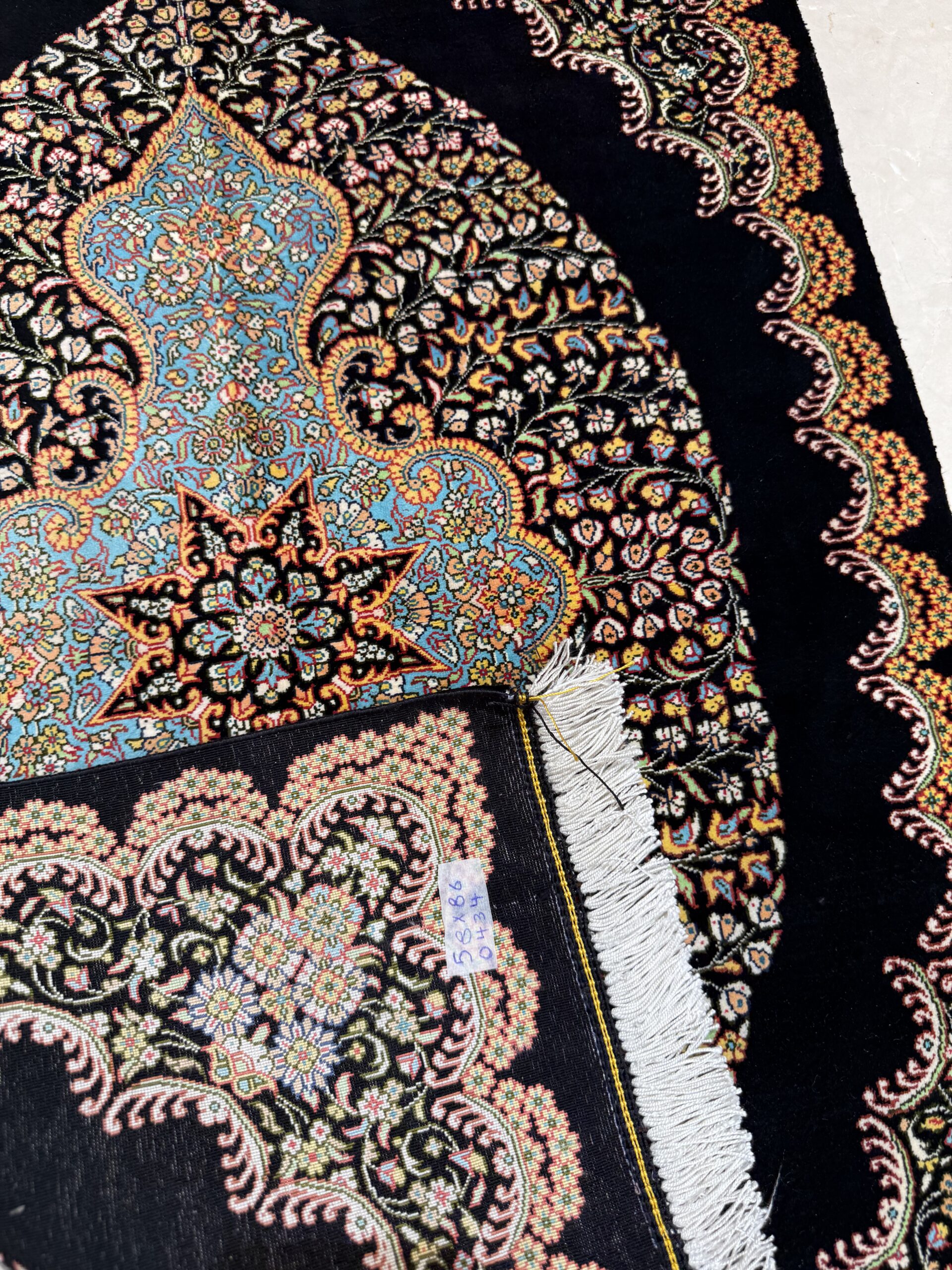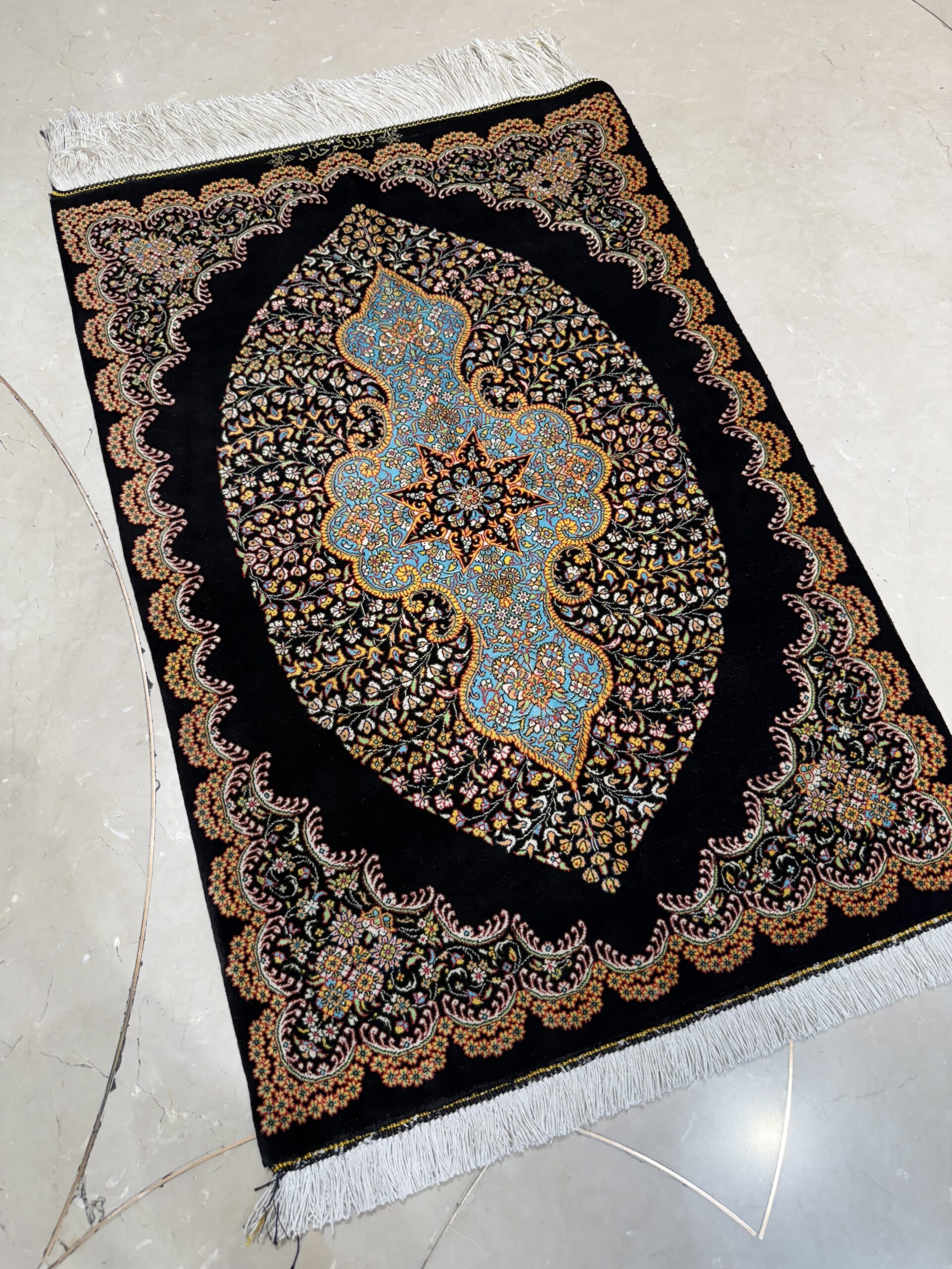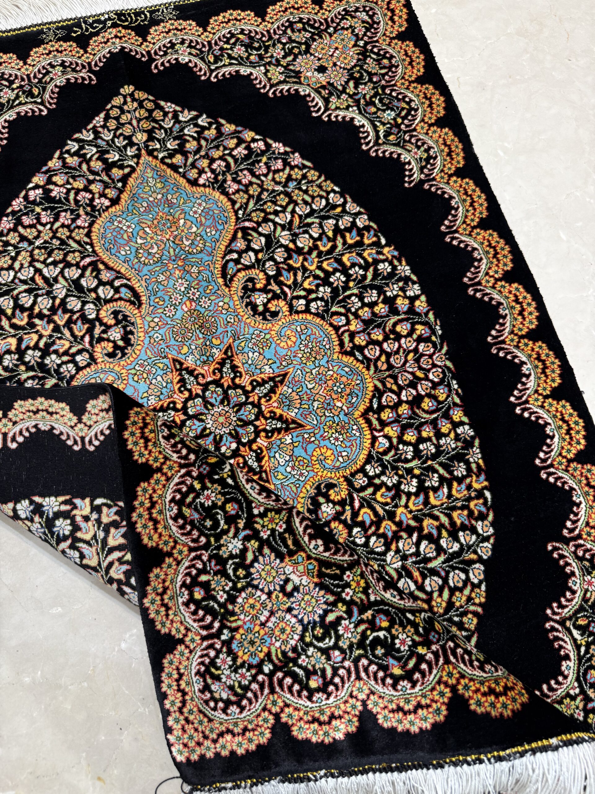 60×90 تمام ابریشم قم طرح لچک ترنج برند حداد