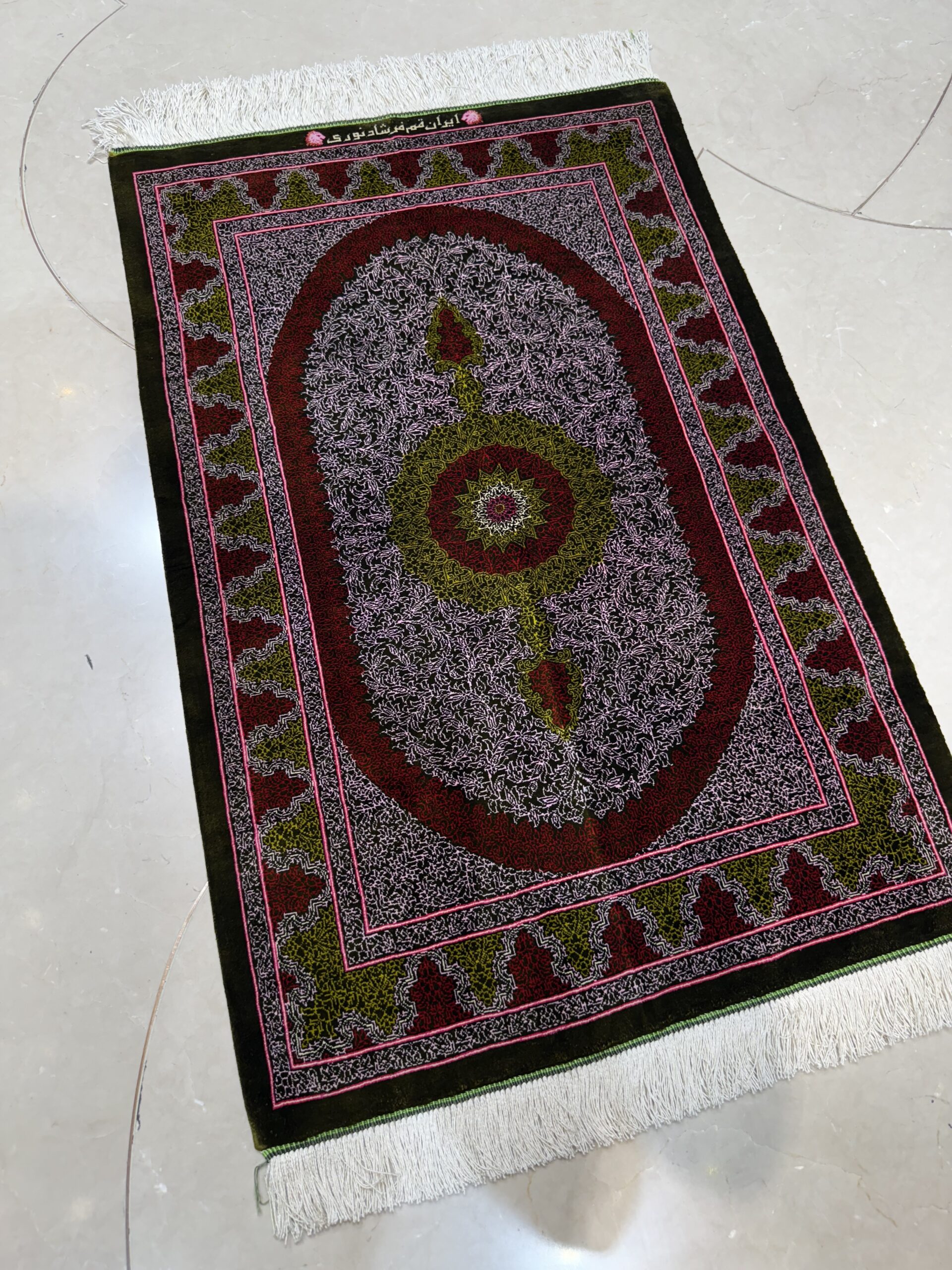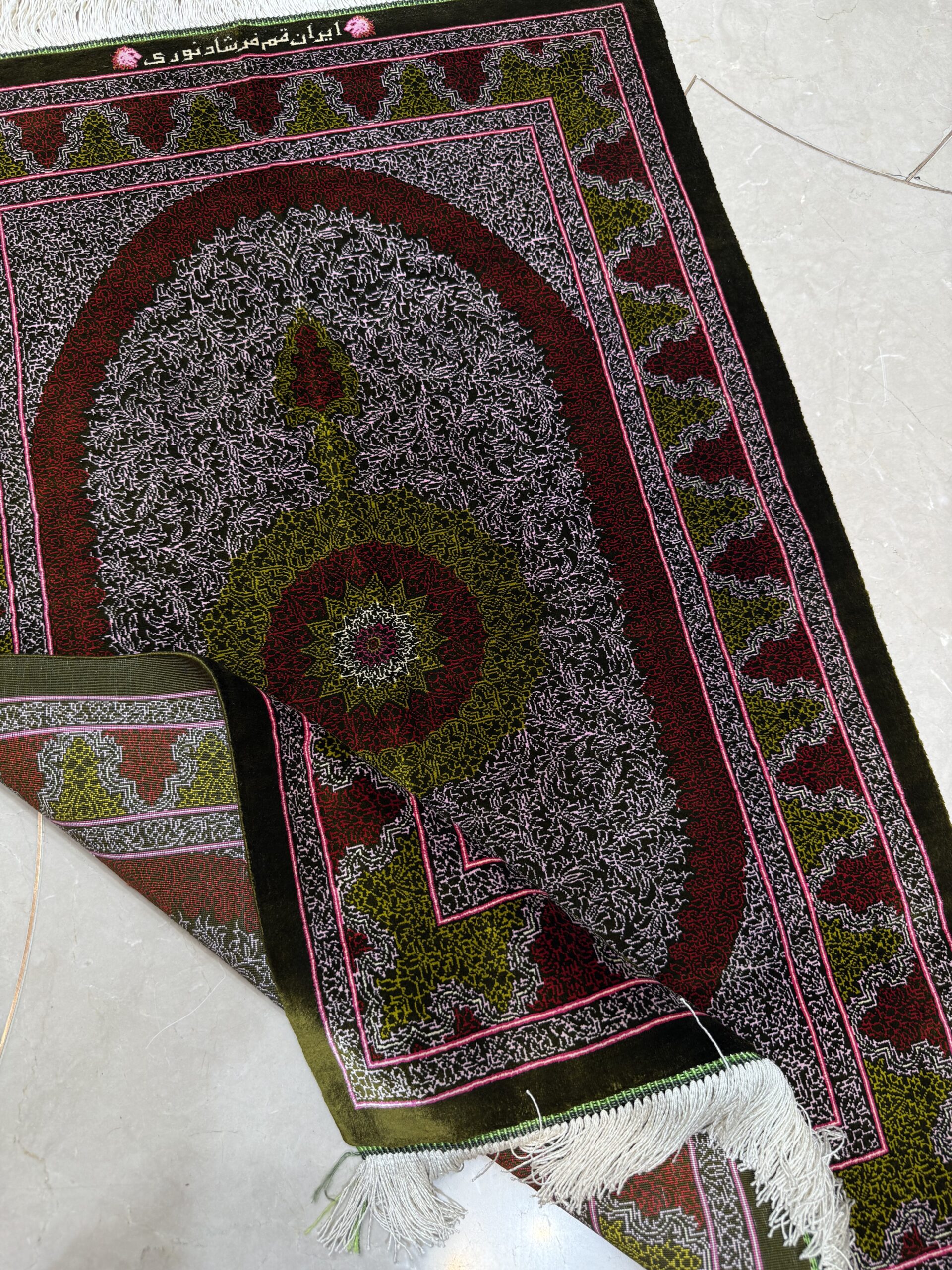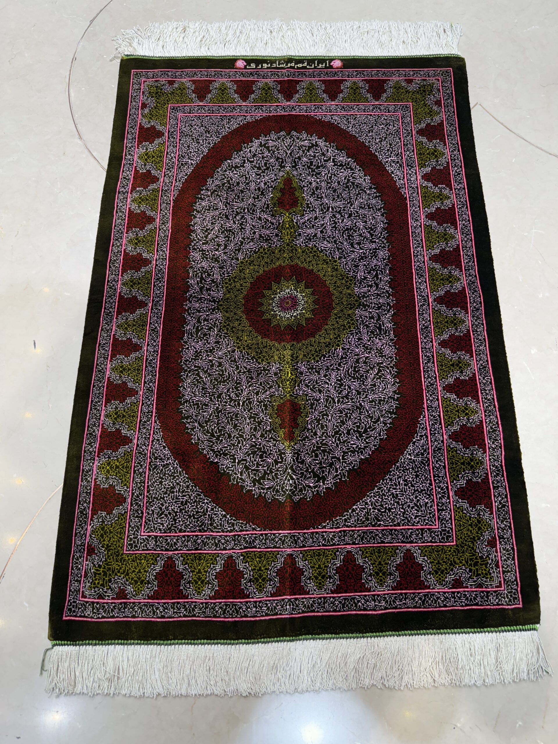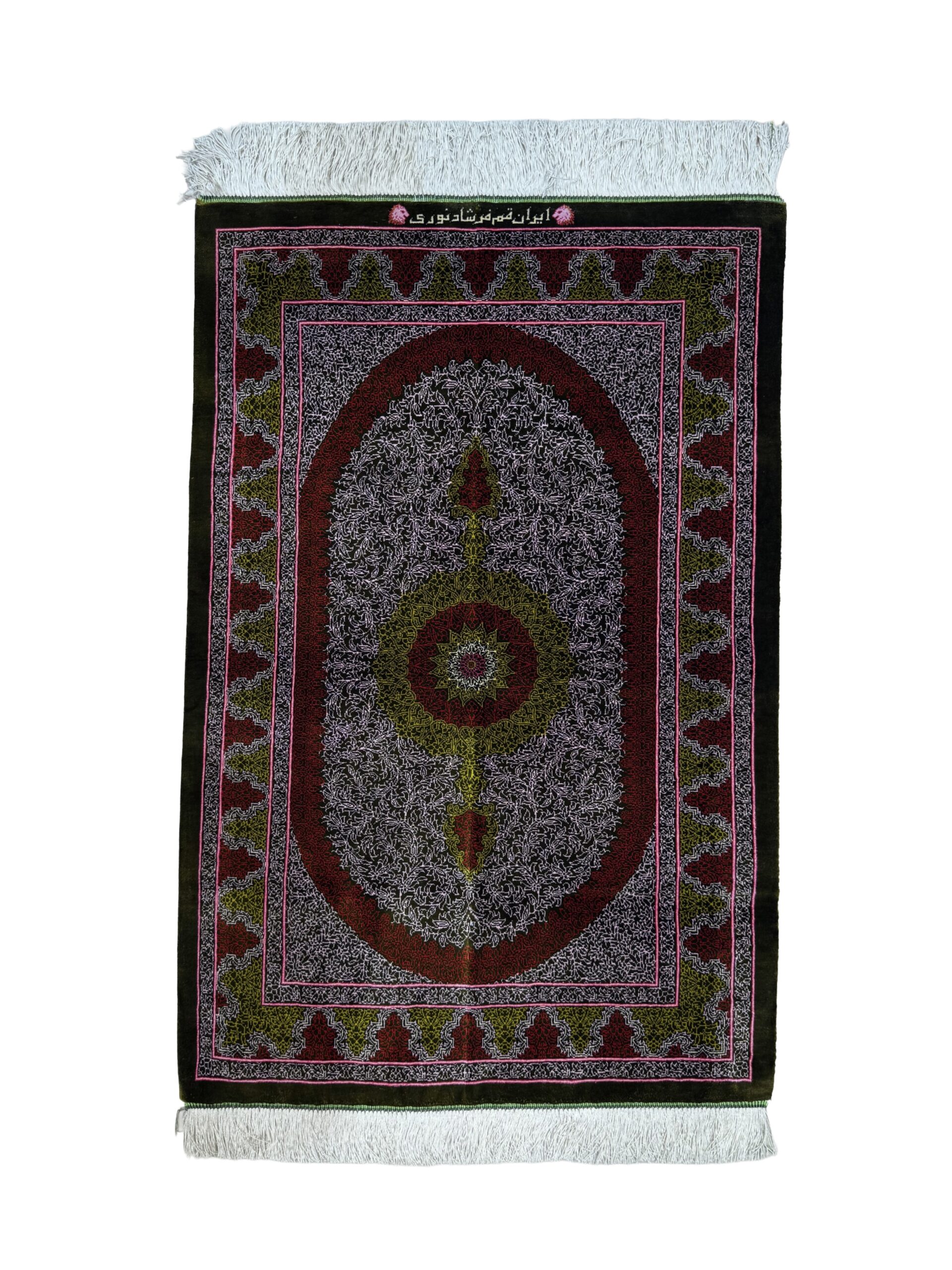 60×90 تمام ابریشم قم طرح لچک ترنج برند نوری