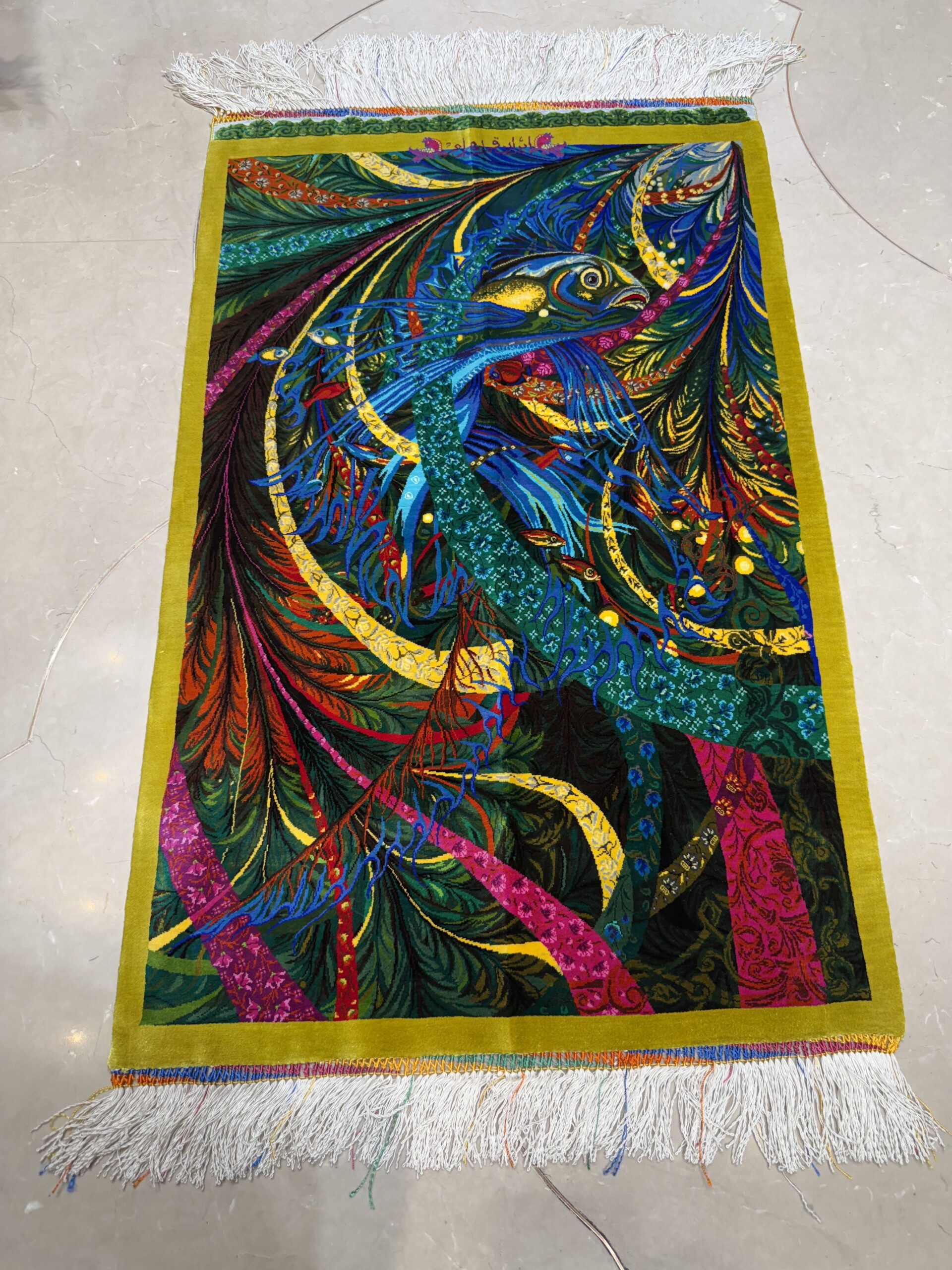 60×90 تمام ابریشم قم طرح مدرن برند بهرام