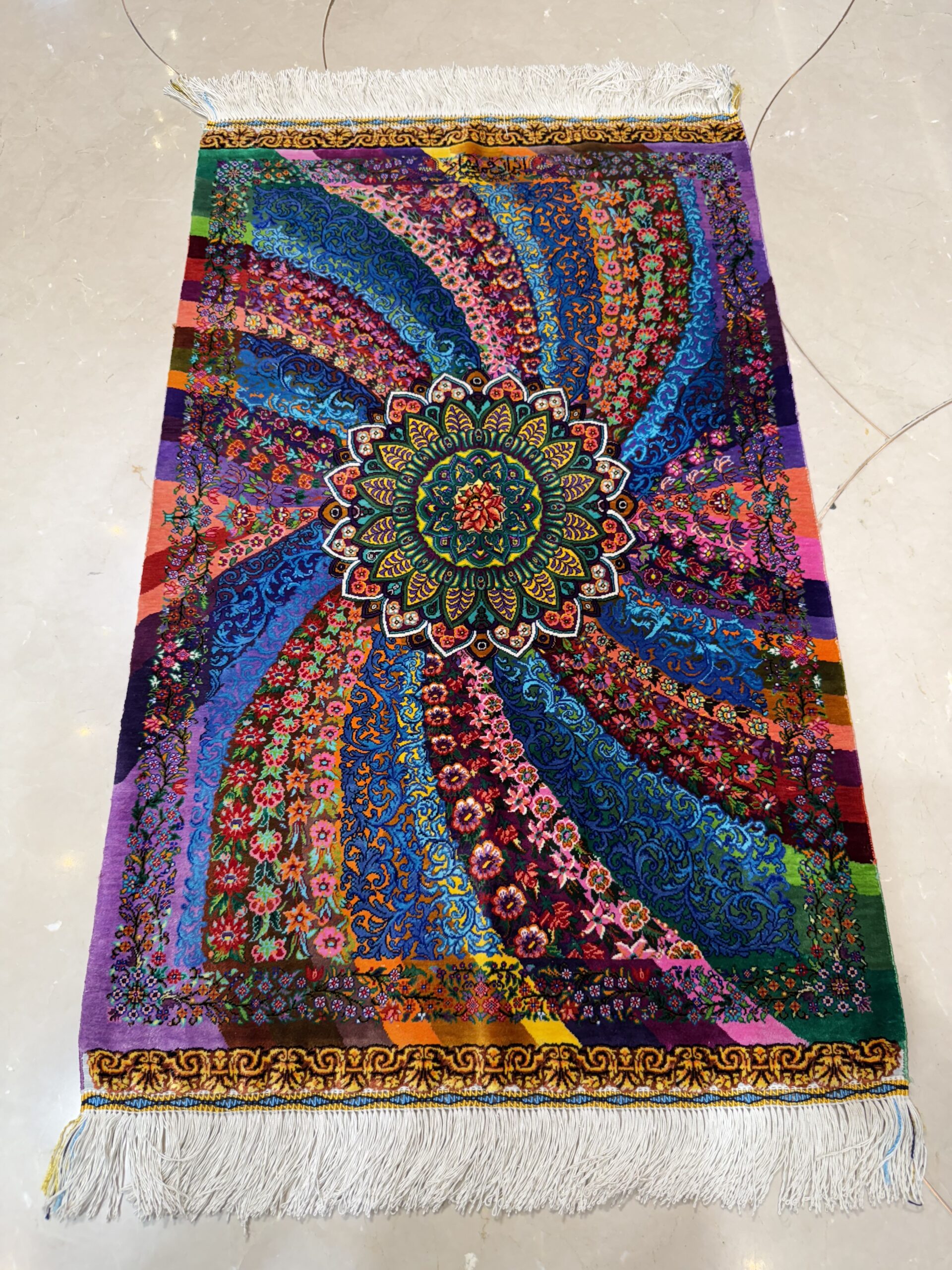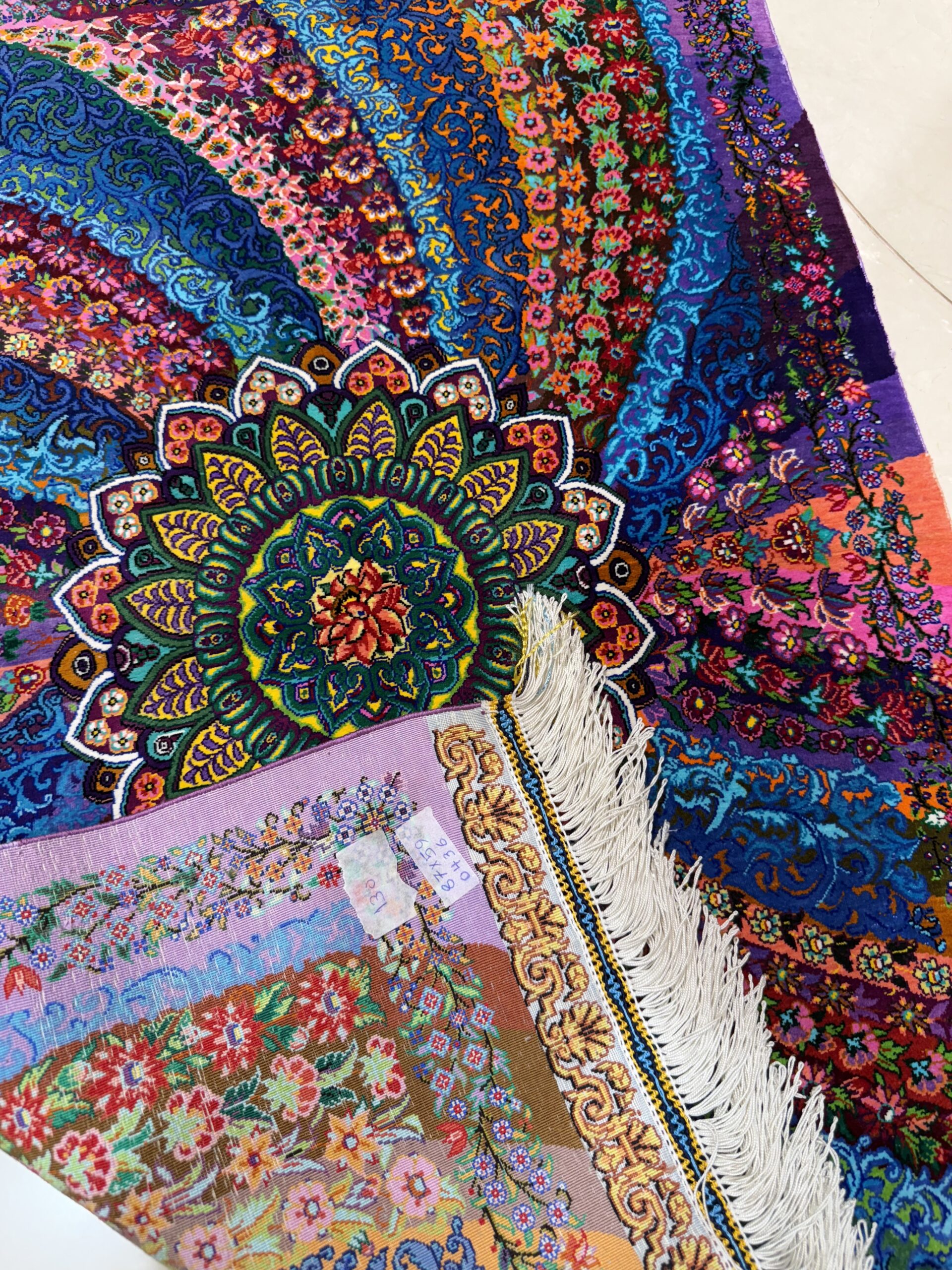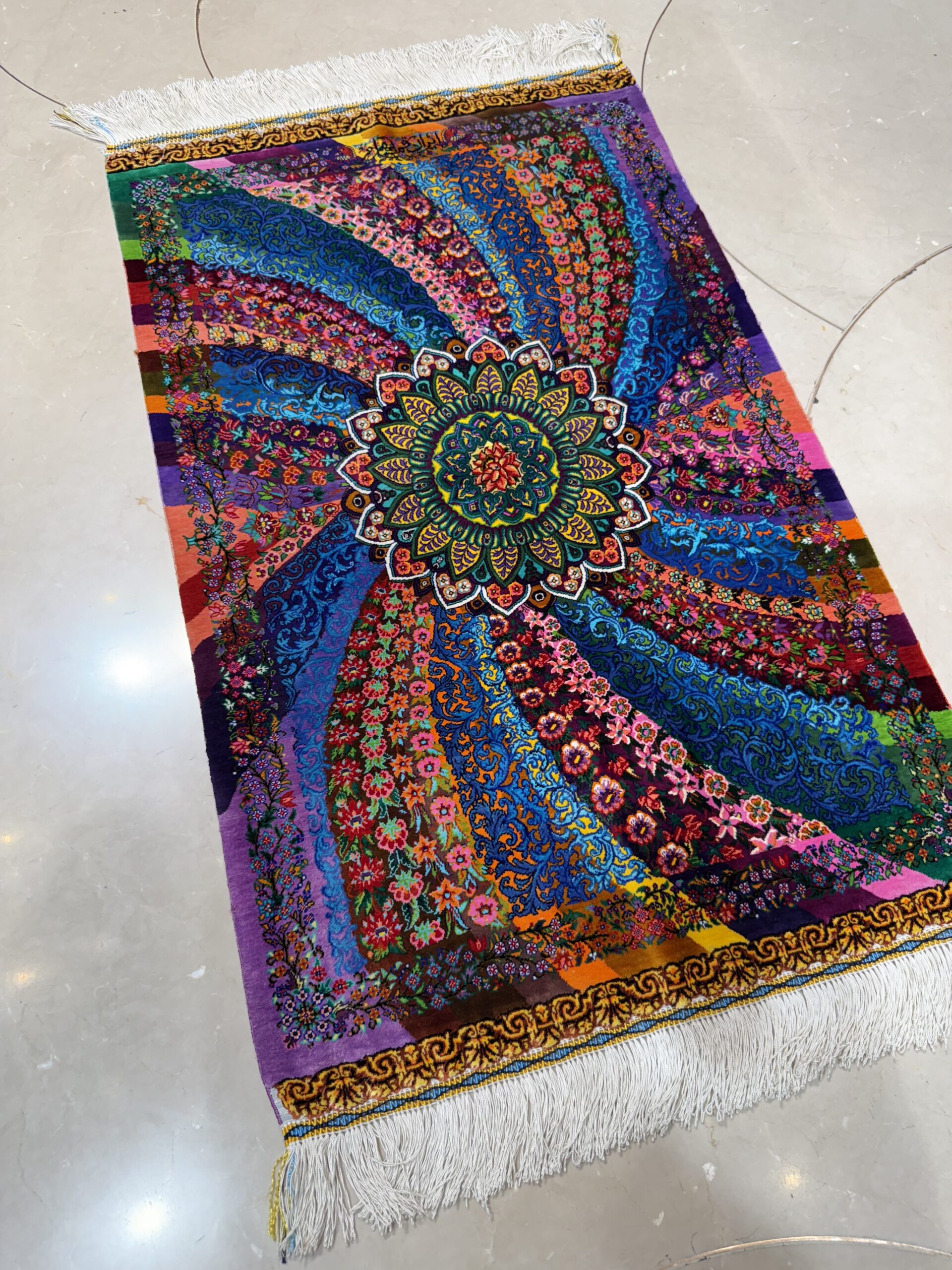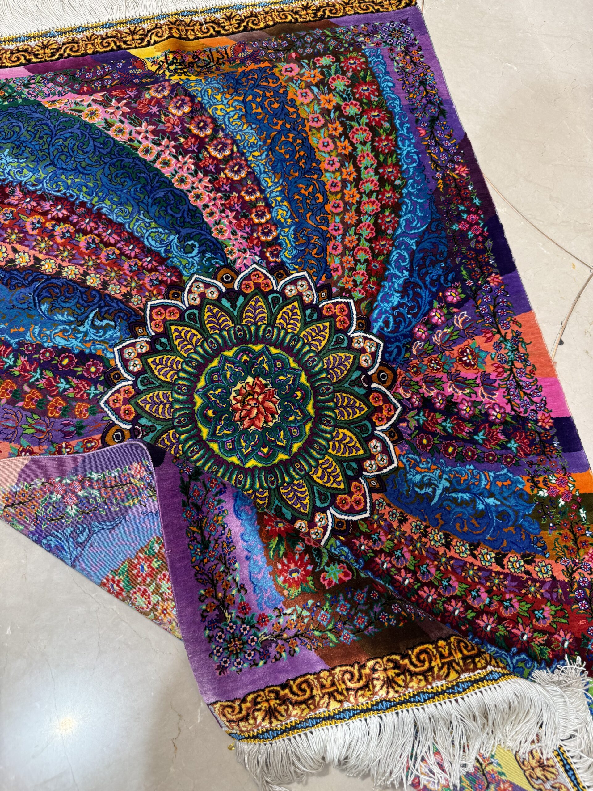 60×90 تمام ابریشم قم طرح گل چرخان برند بهرام