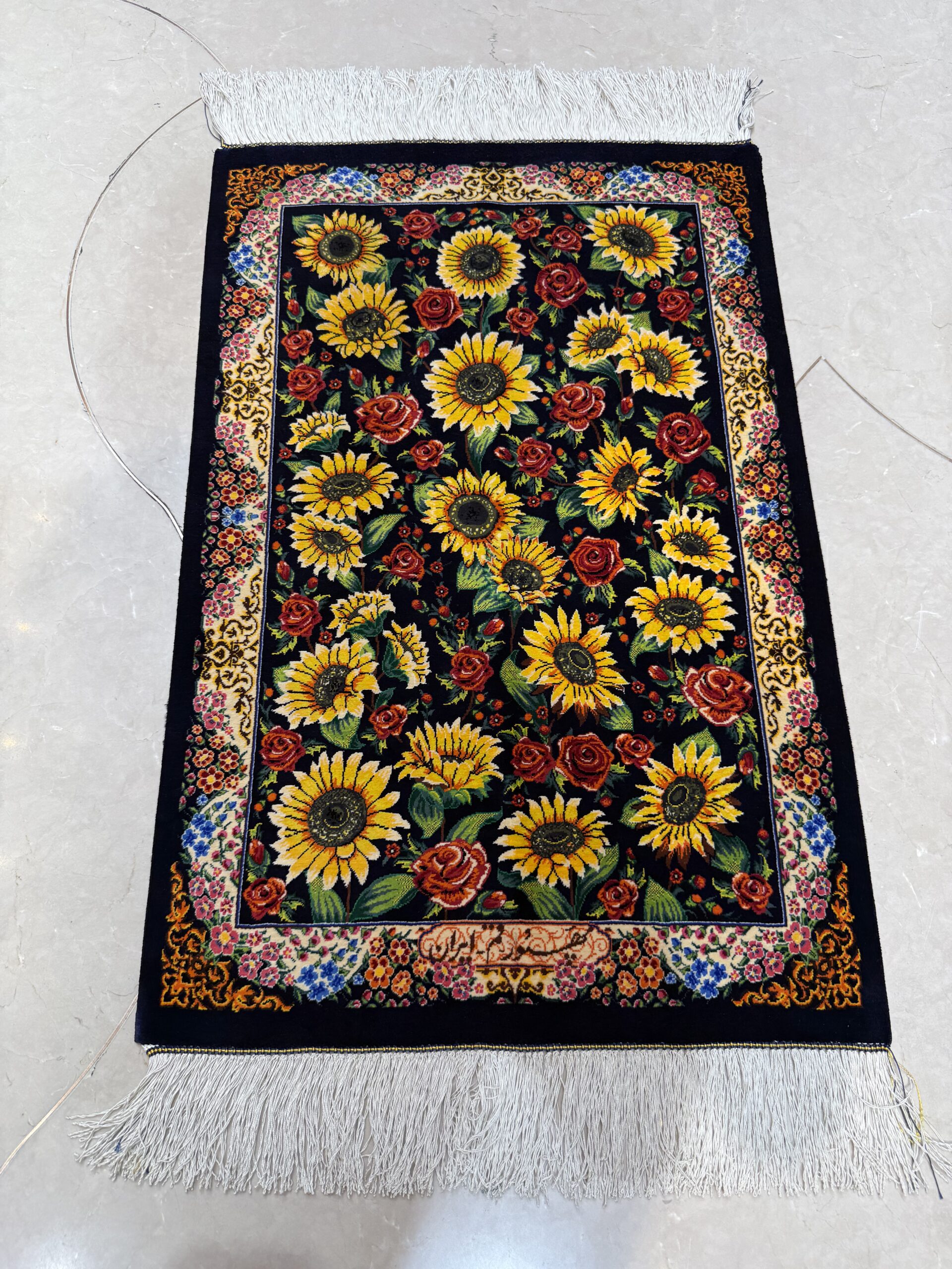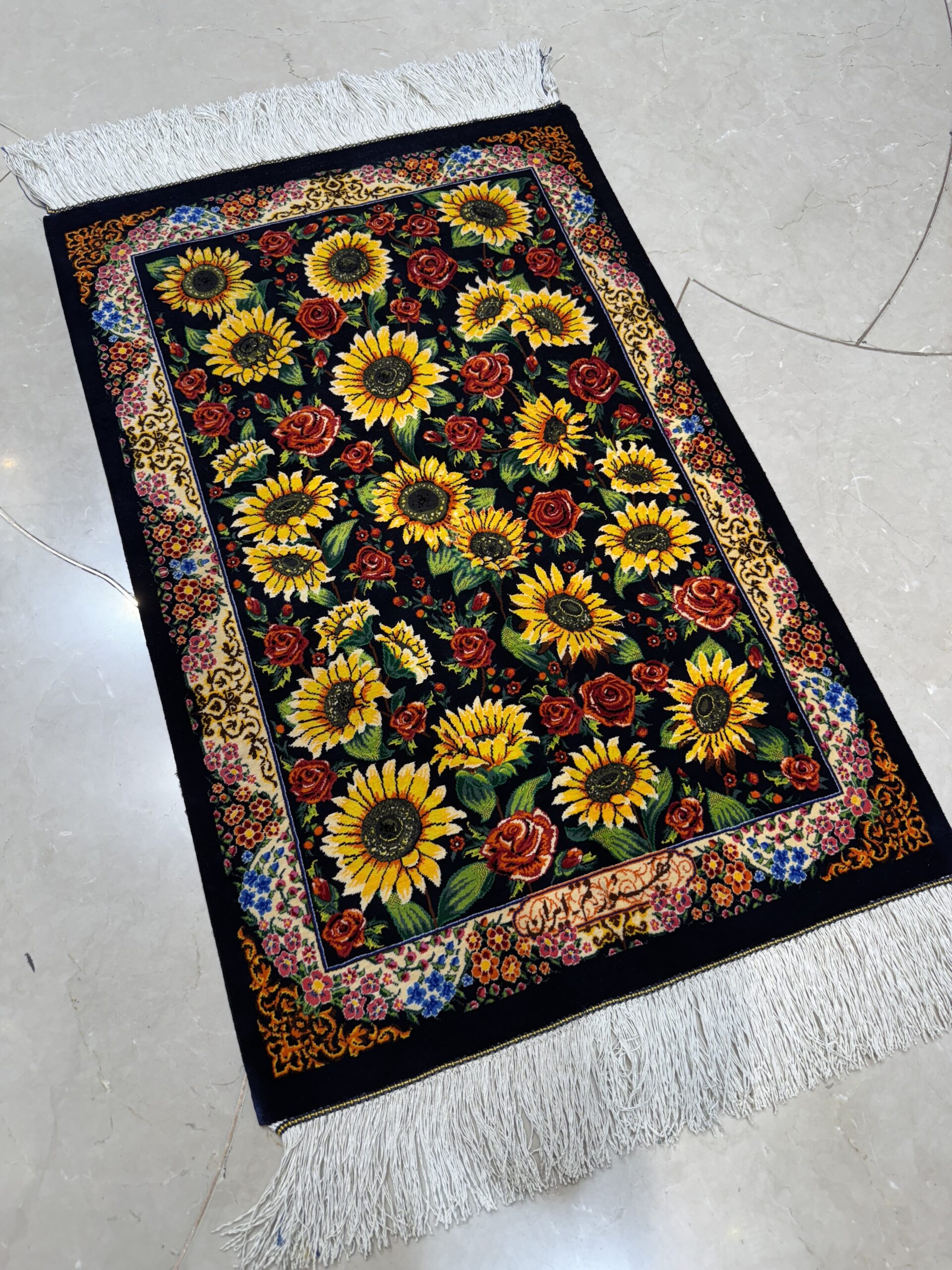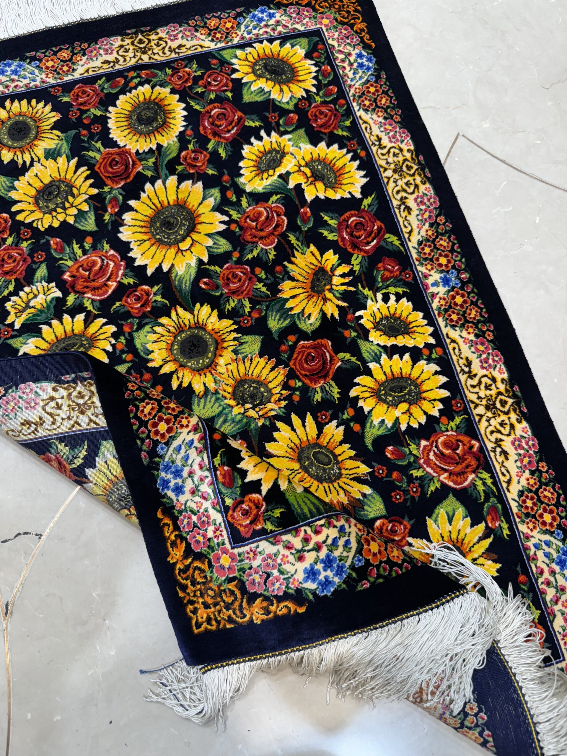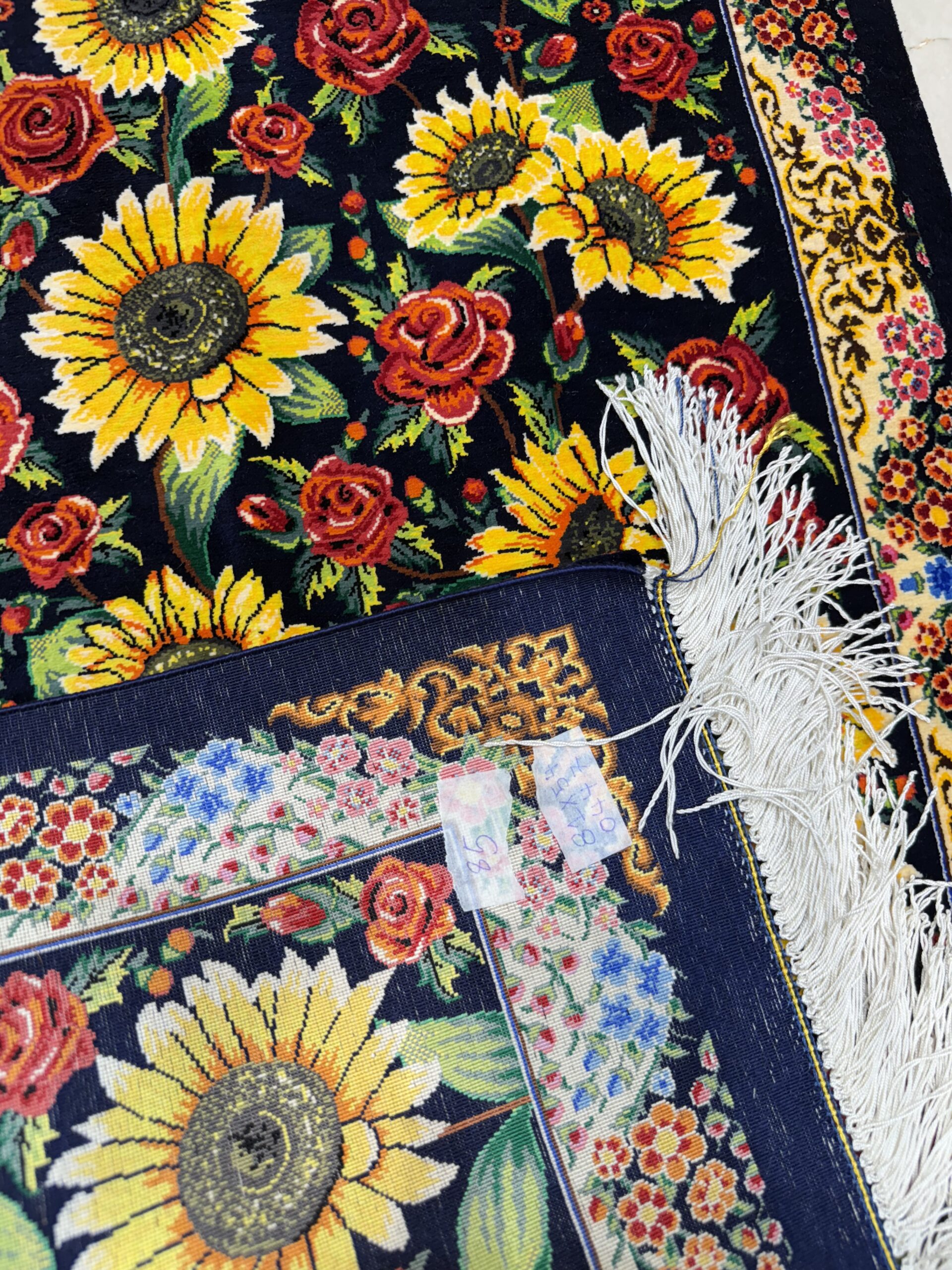 60×90 تمام ابریشم قم گل افتاب گردون برند مهپور
